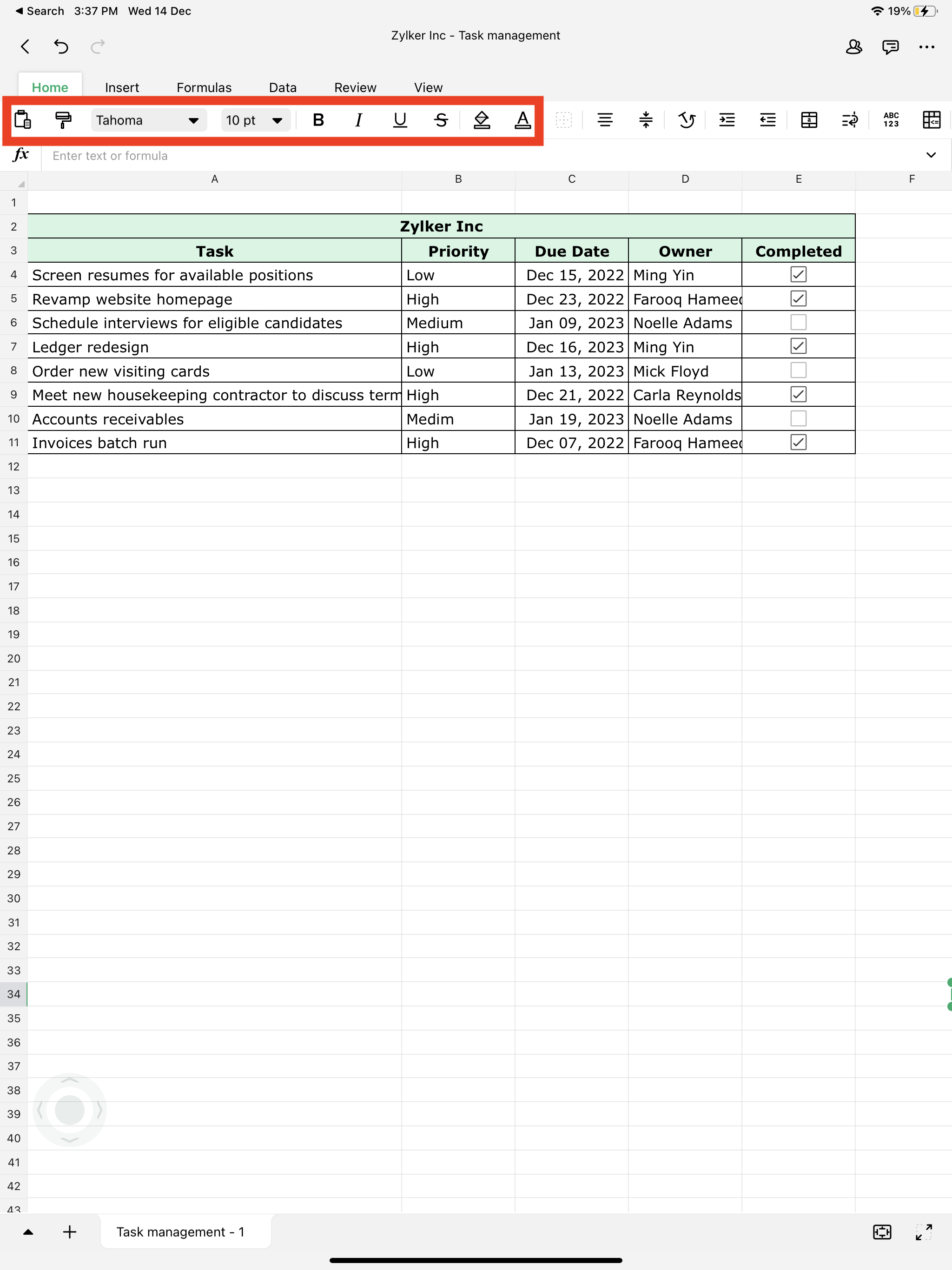 2. Tap the Home menu and select any type of formatting options like Bold, Italics, Underline, Strikethrough, Font family, Font size, Color, etc.