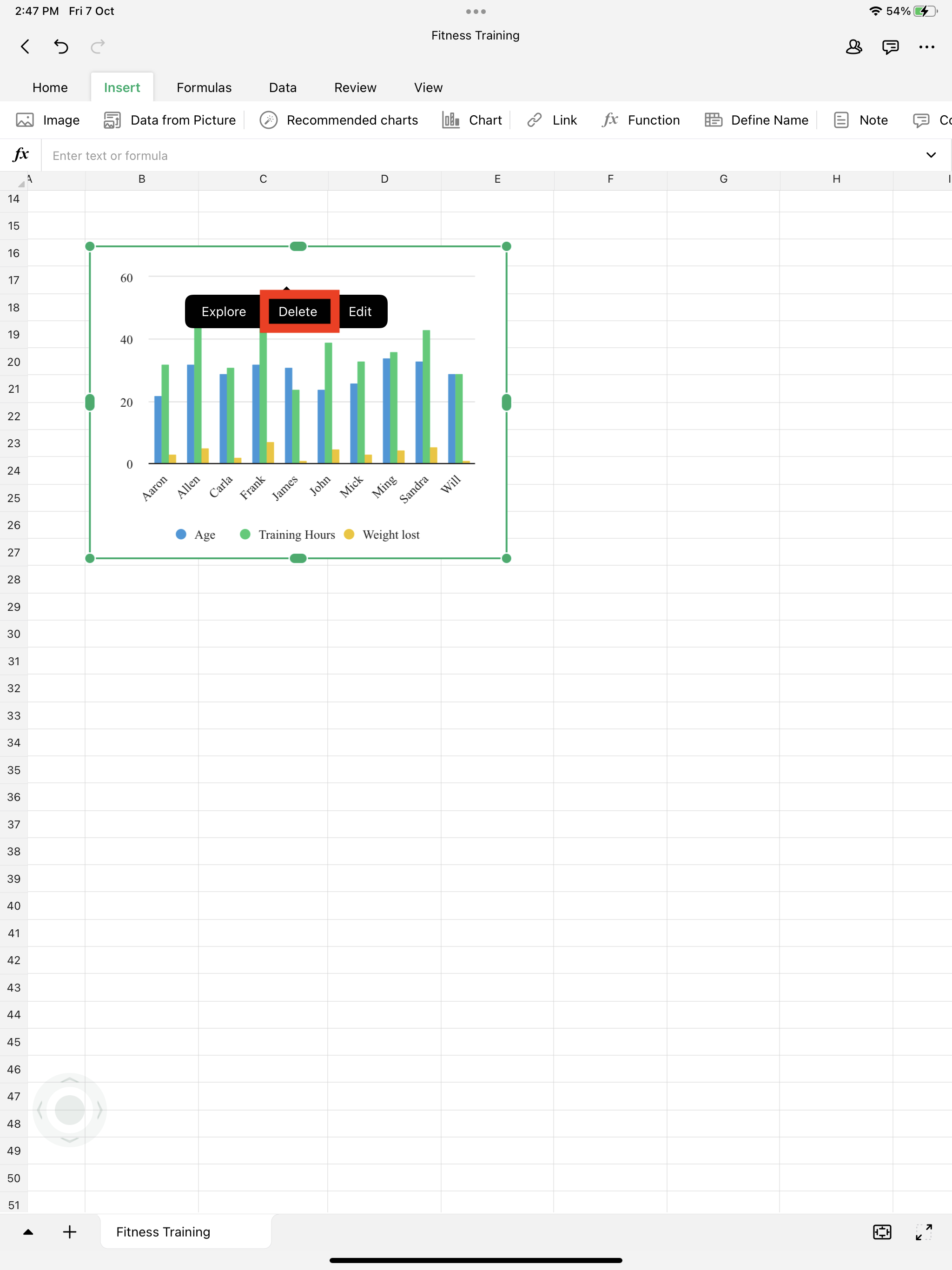 1. Tap the chart you wish to delete and select Delete from the contextual menu.