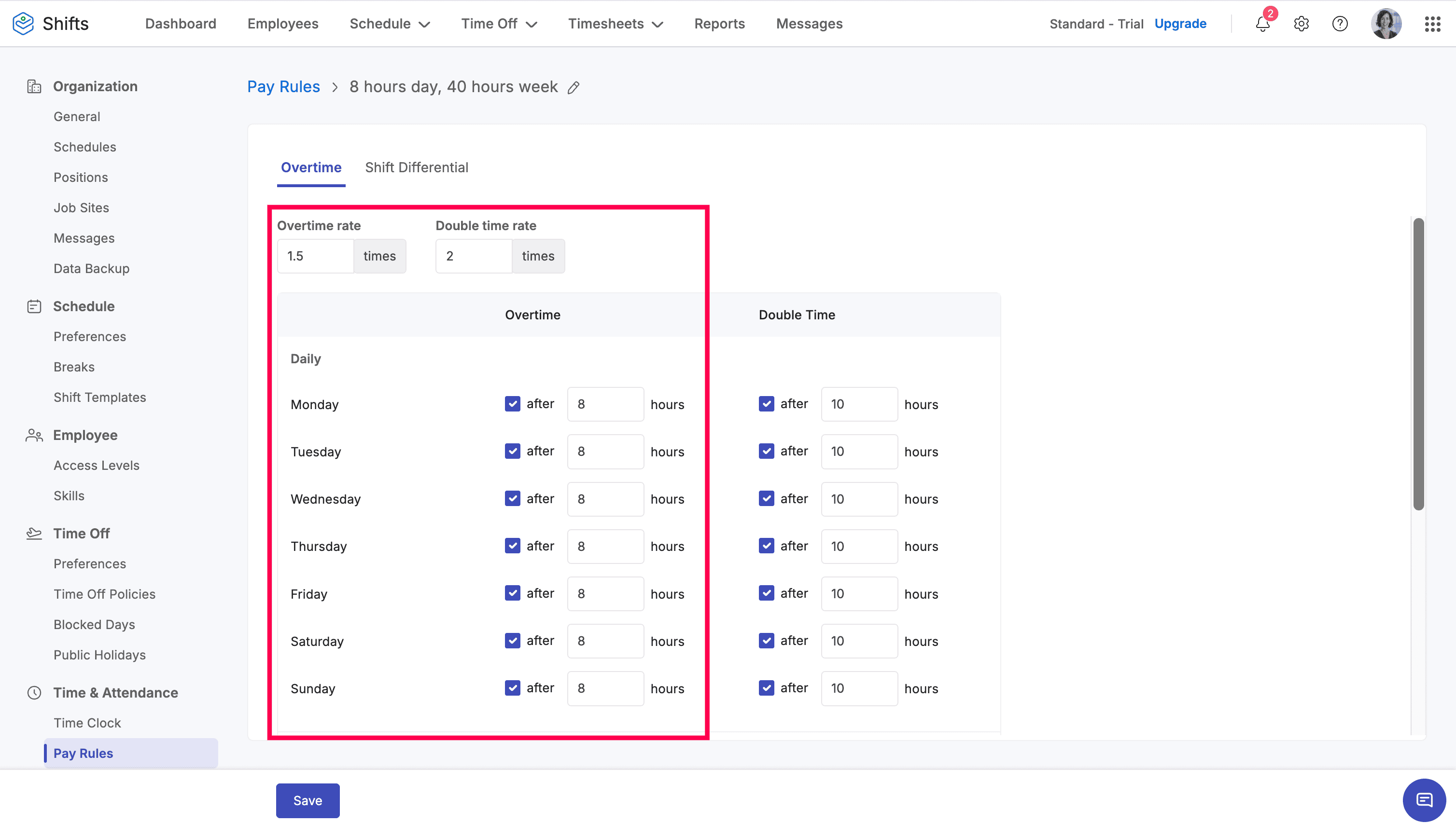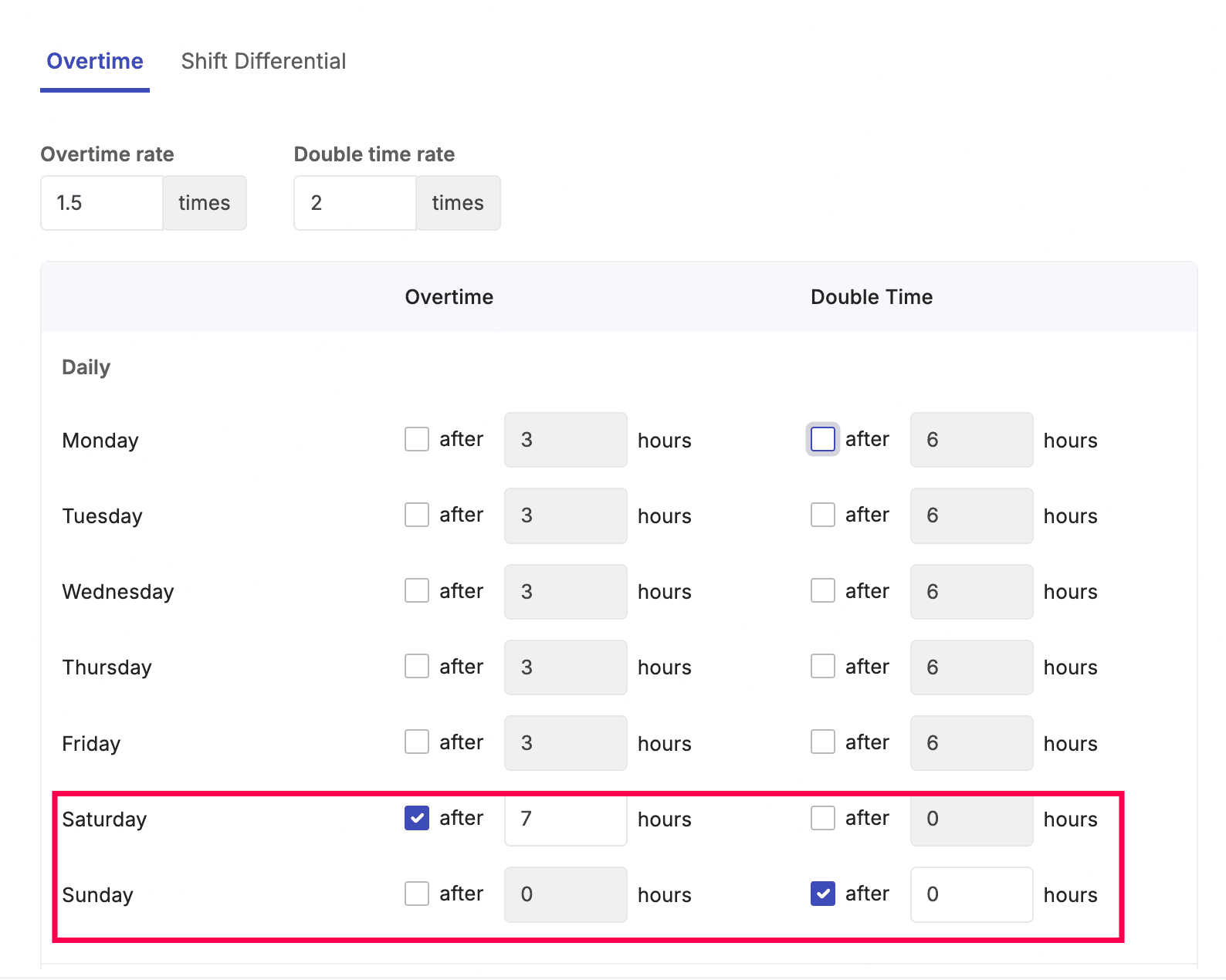 Wednesday | 7:00 AM | 5:00 PM | 10 hours |
