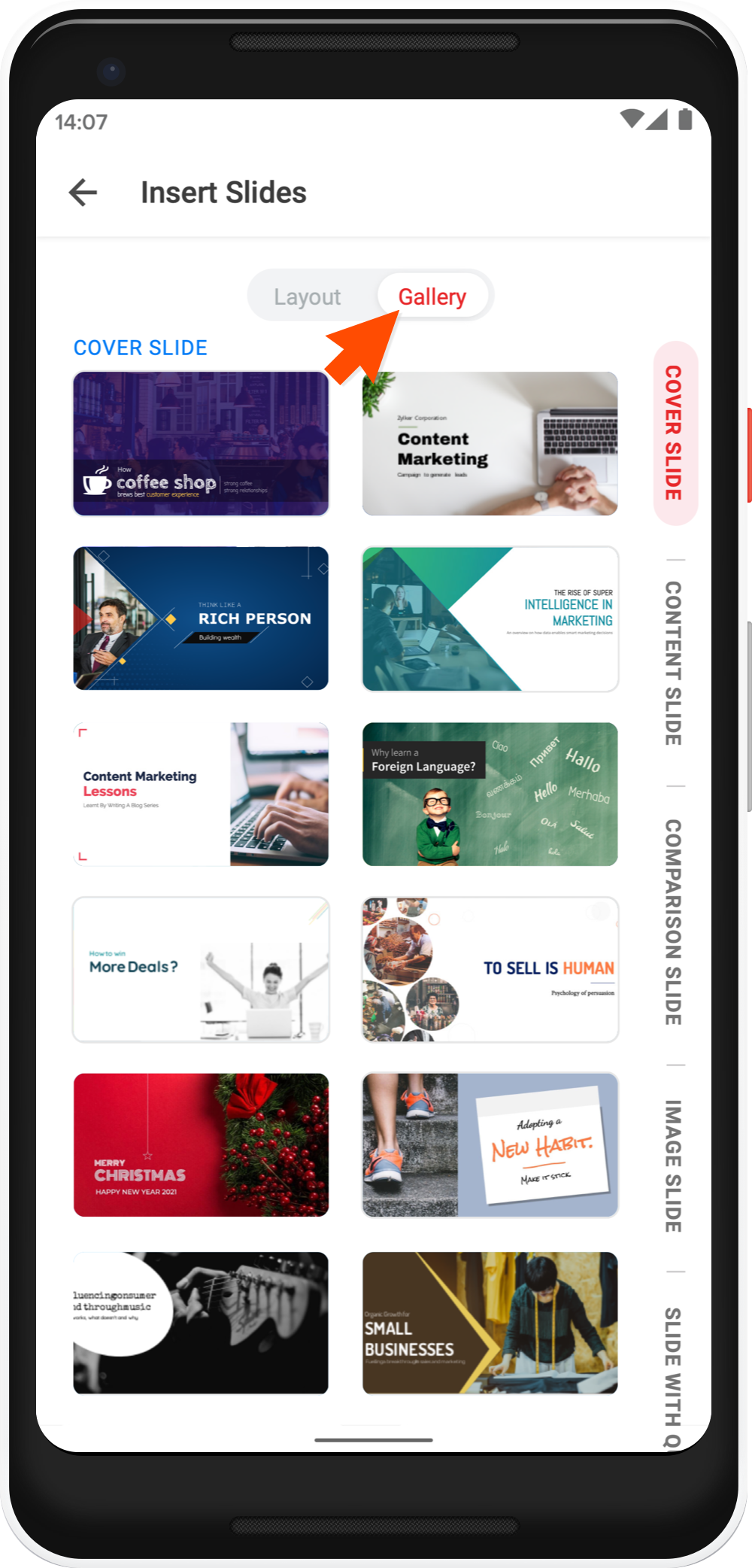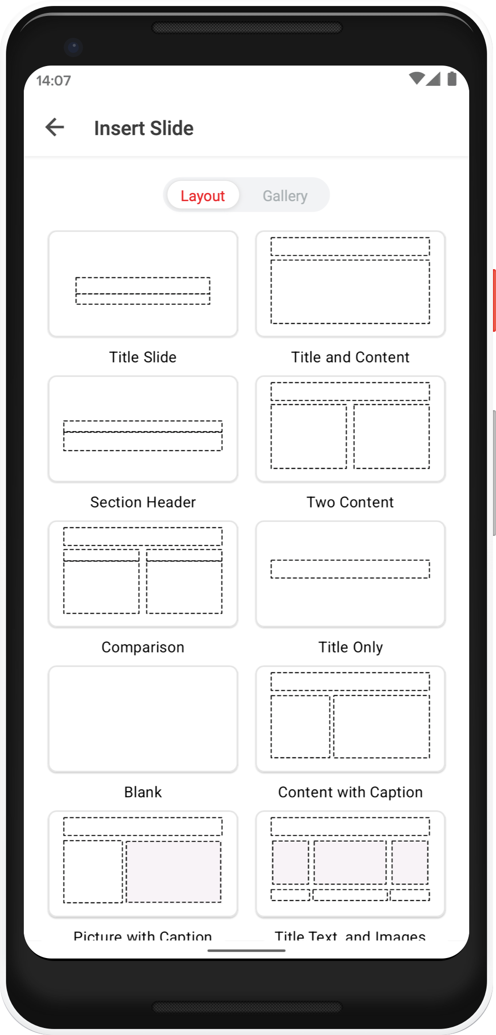 2. Tap to select your preferred from the standard or slide layouts to add it as a new slide.