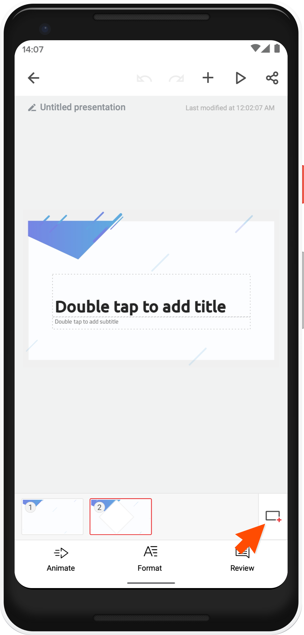 1. Tap the New Slide  icon in the bottom-right corner. By default, this will open with the Layout options.