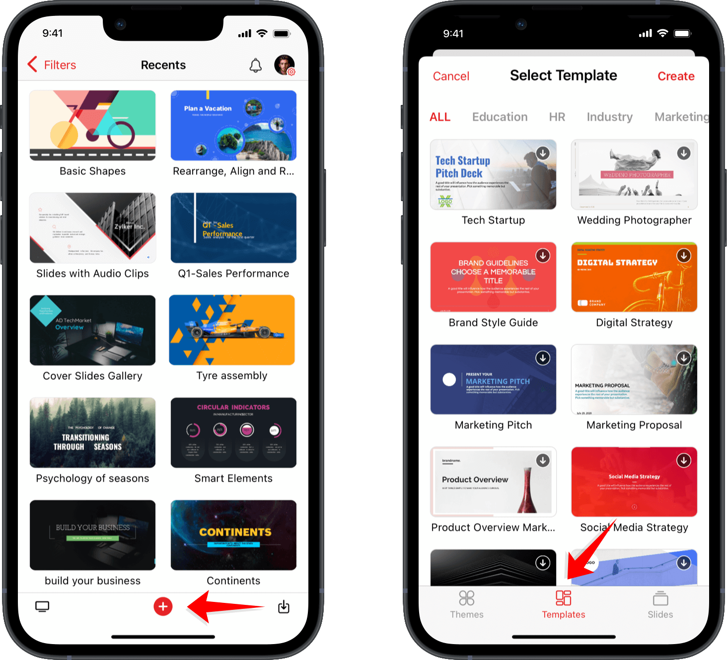 You can use templates in the Show app to get started with your presentation quickly without having to create it from scratch. The app offers a wide range of templates that are tailor-made for your domain.