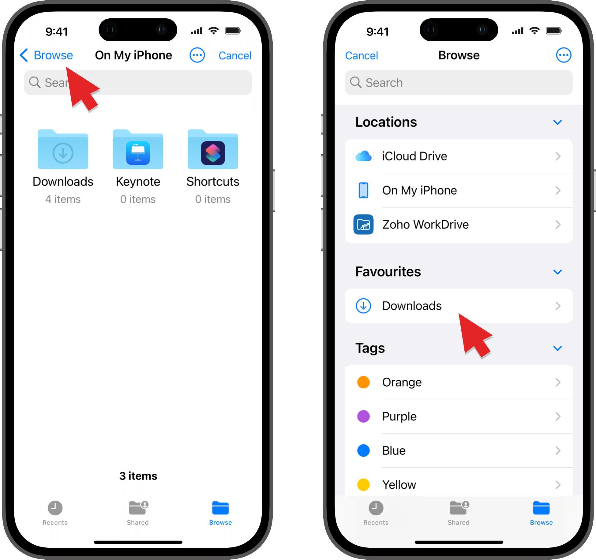 2. Click Browse in the top-left corner to select your storage drive from the files app.