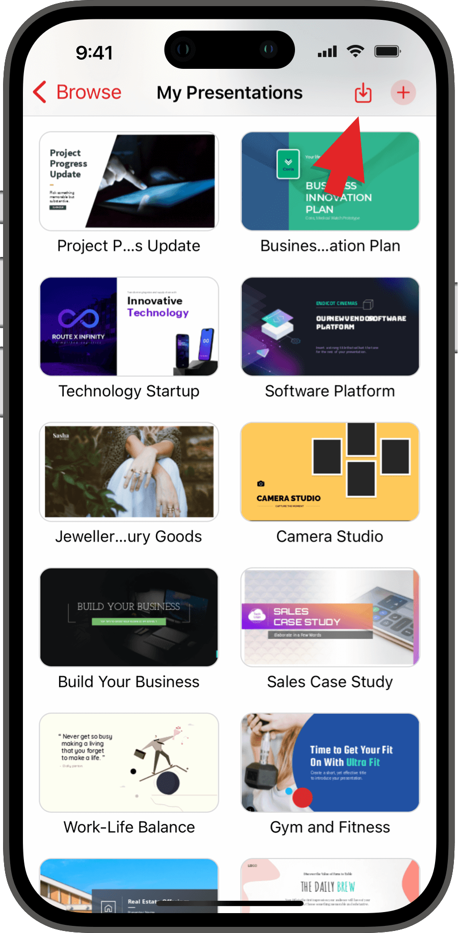 Sign in or sign up with Zoho Show to import slide decks created using other presentation tools including PowerPoint and Google Slides. You can import slide shows from your iOS device or any cloud storage drives, and use the Show app to modify them further or present them.
