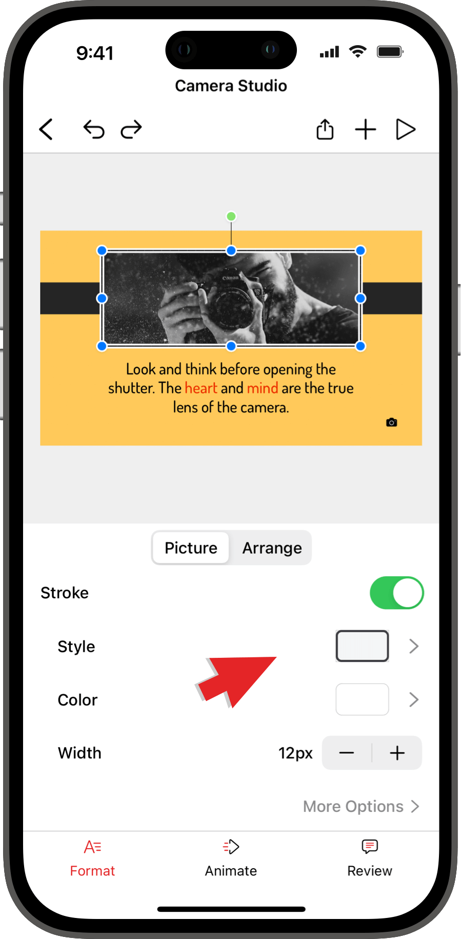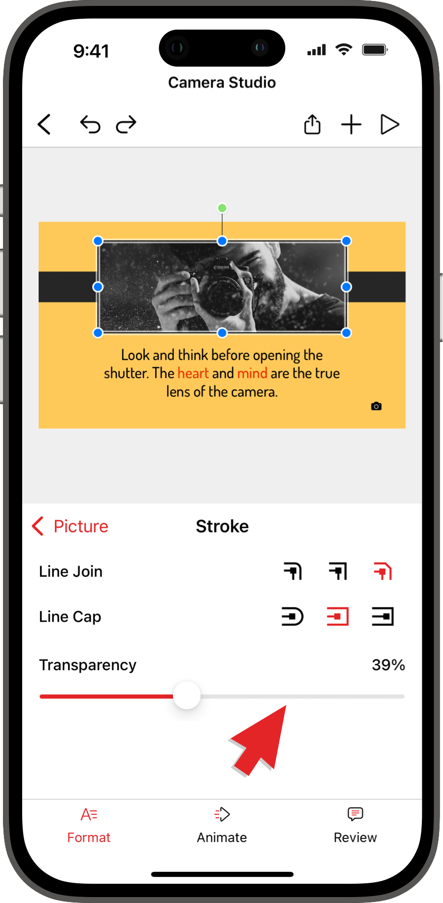 - Line Join: Refers to how the corners of the shapes appear when connecting two line elements. They are classified into miter, round and bevel joins. Tap the options next to Line Join to sharpen or soften the borders.