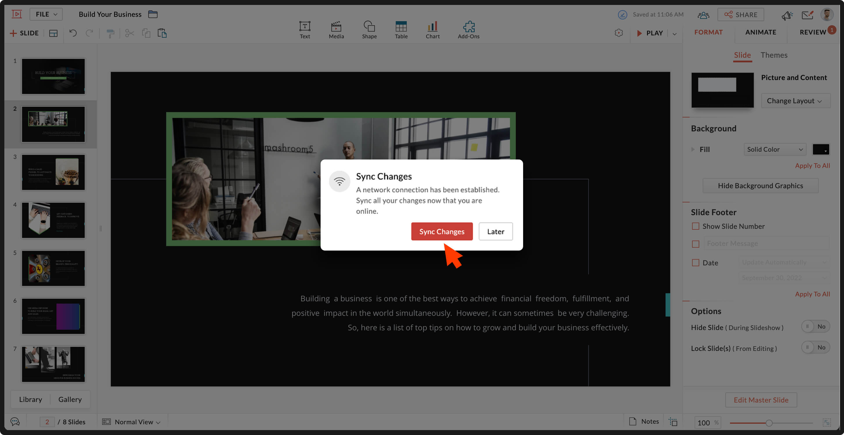 - Click Sync Changes for the changes to be updated to the presentation immediately.