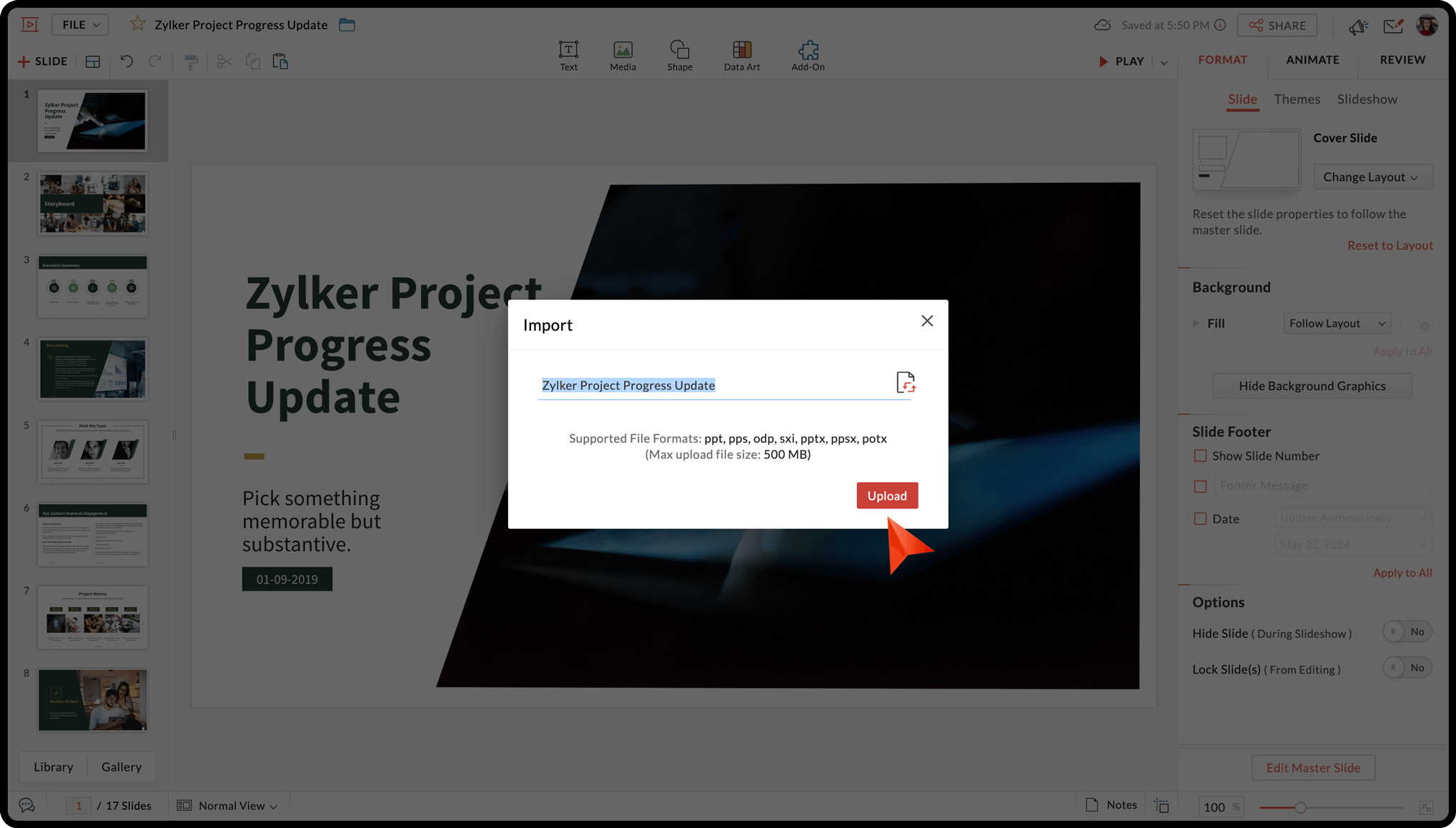 • Import a presentation into your Zoho Show app