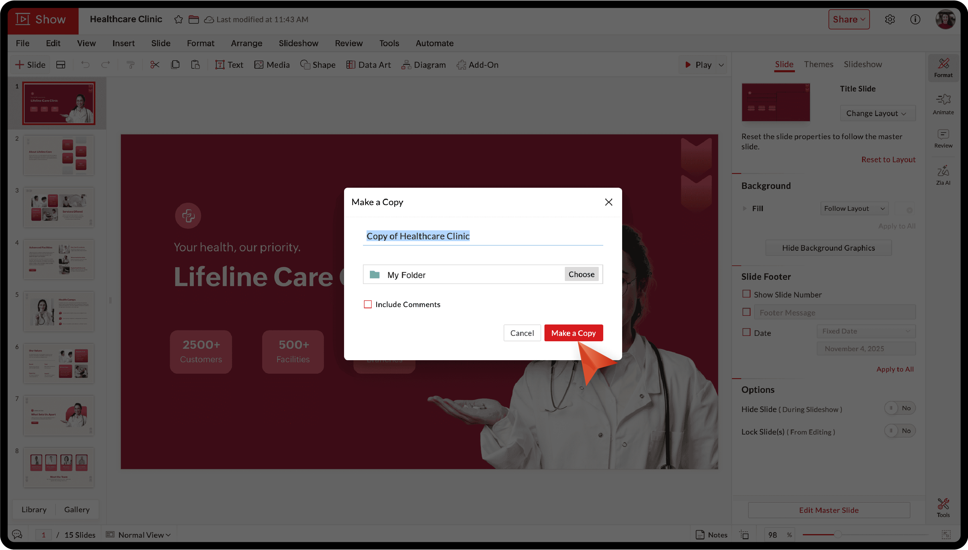 Click More icon next to the thumbnail of the required presentation and click Make a Copy