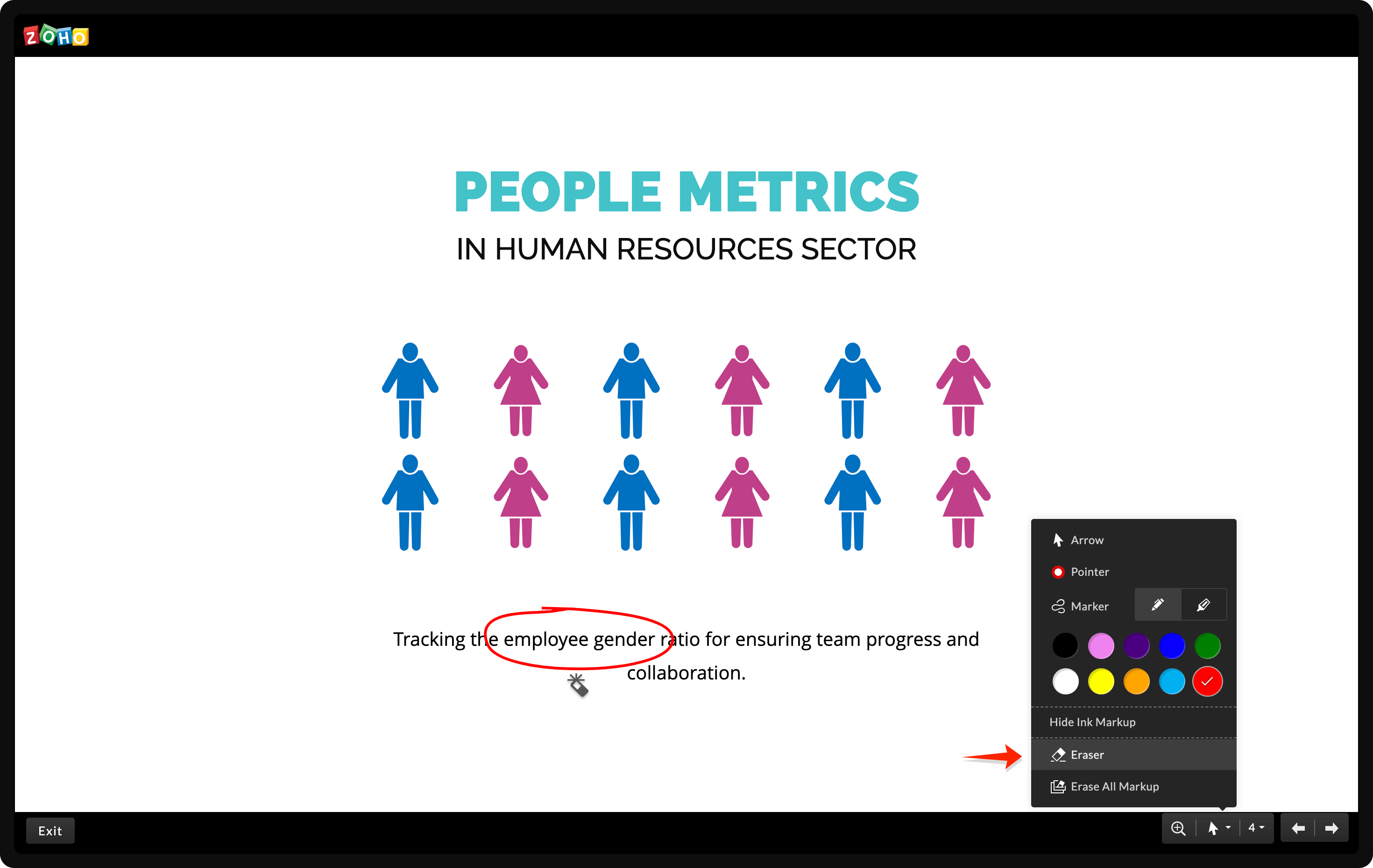 2. Click and drag the mouse to write or draw. To hide the marks you made on the slide, click Hide Ink Markup.
