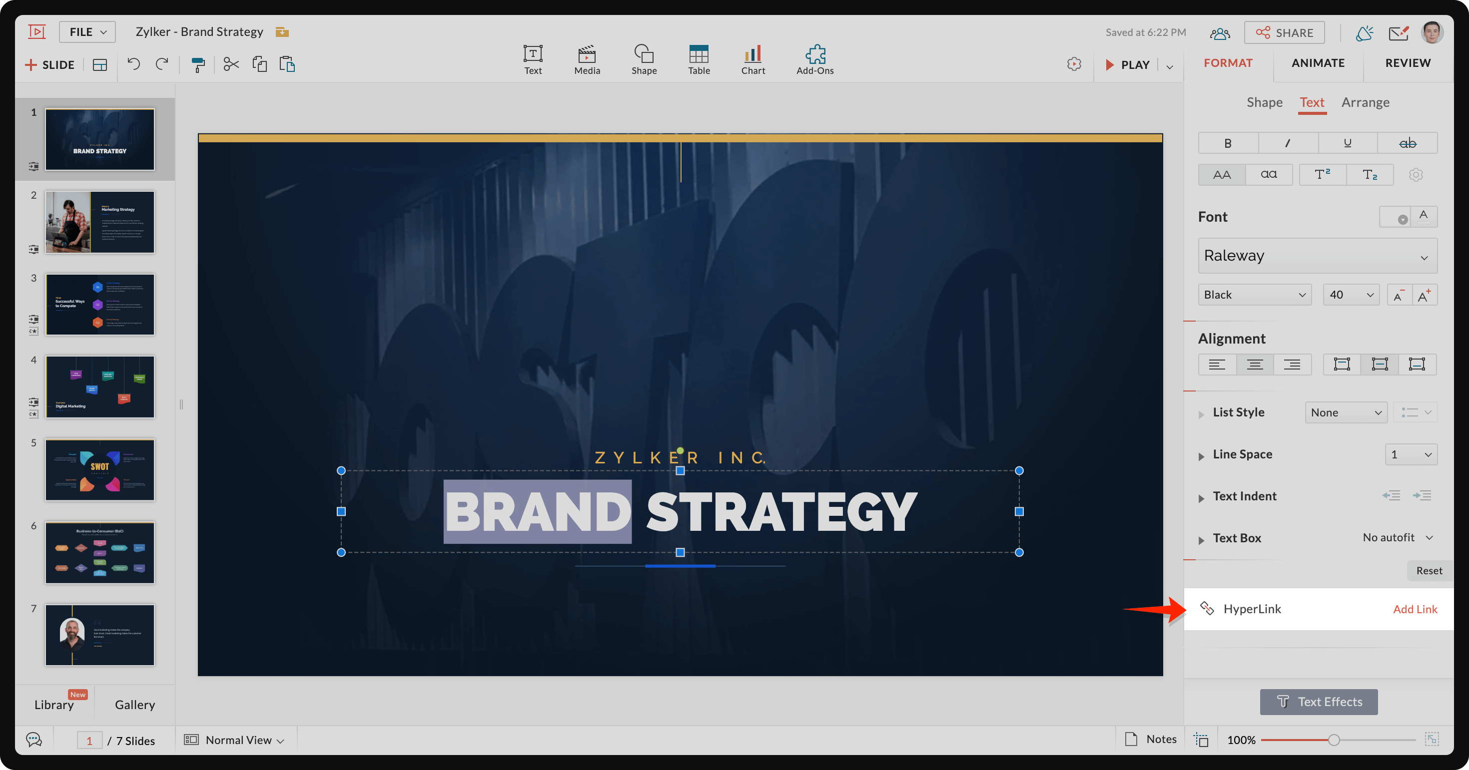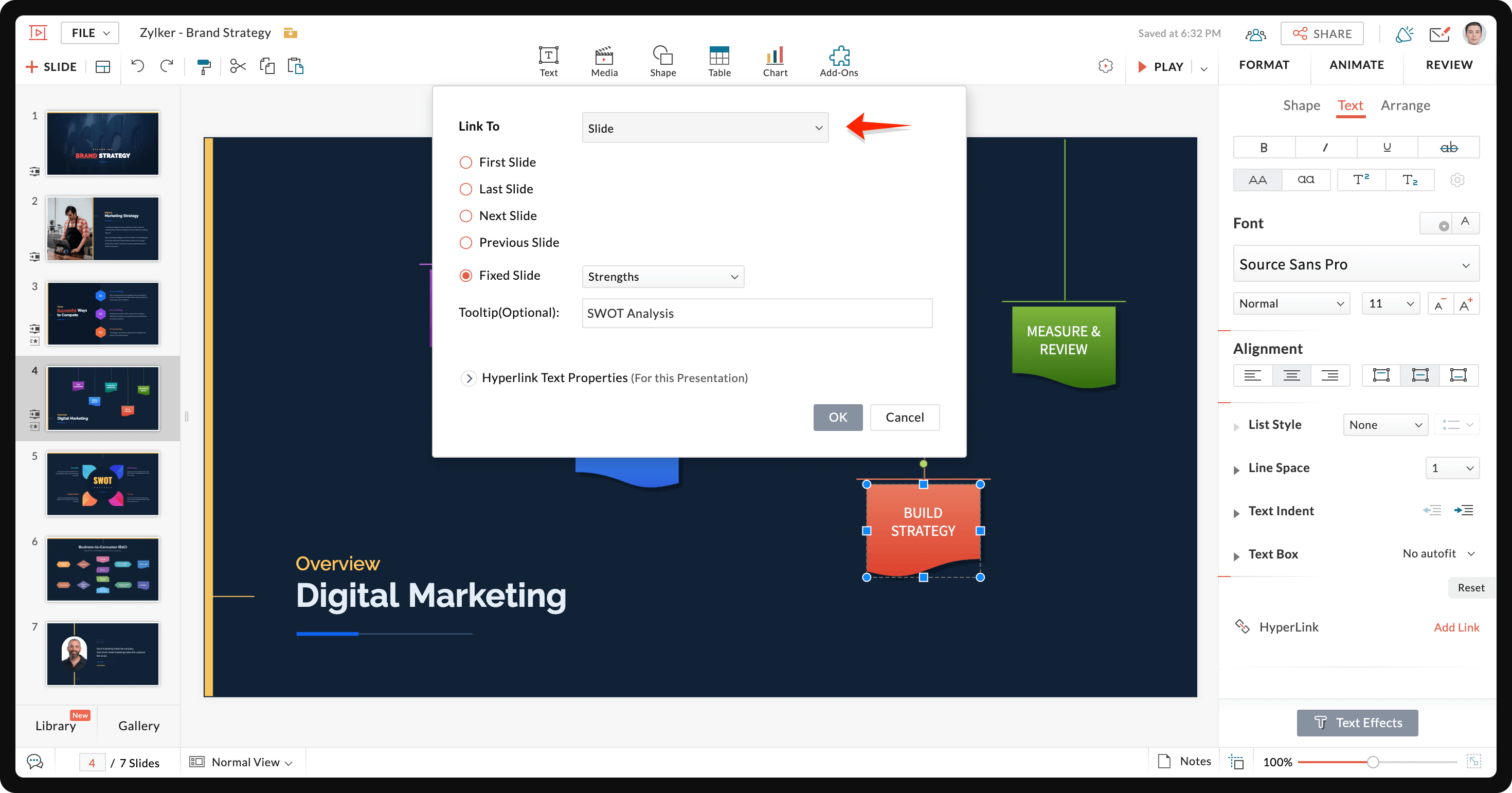 If you want the action buttons to show up in all the slides in your presentation uniformly, then instead of adding them one at a time on the slide you can insert them within the Master View. Adding action buttons in the Master Slide is similar to adding any other object in the Slide Master.