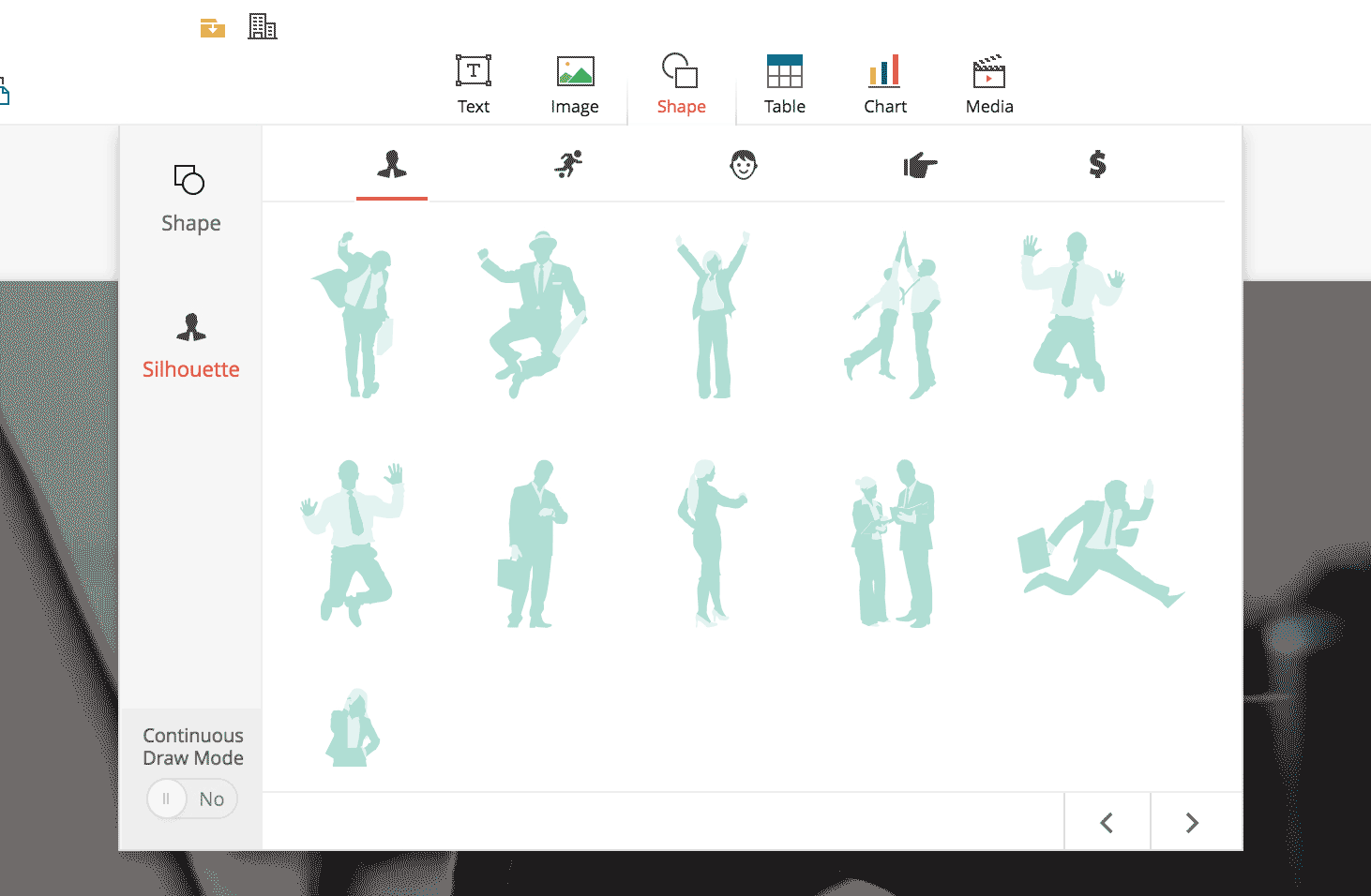 1. Select Shape from Insert pane at the top and choose Silhouette at the left.
