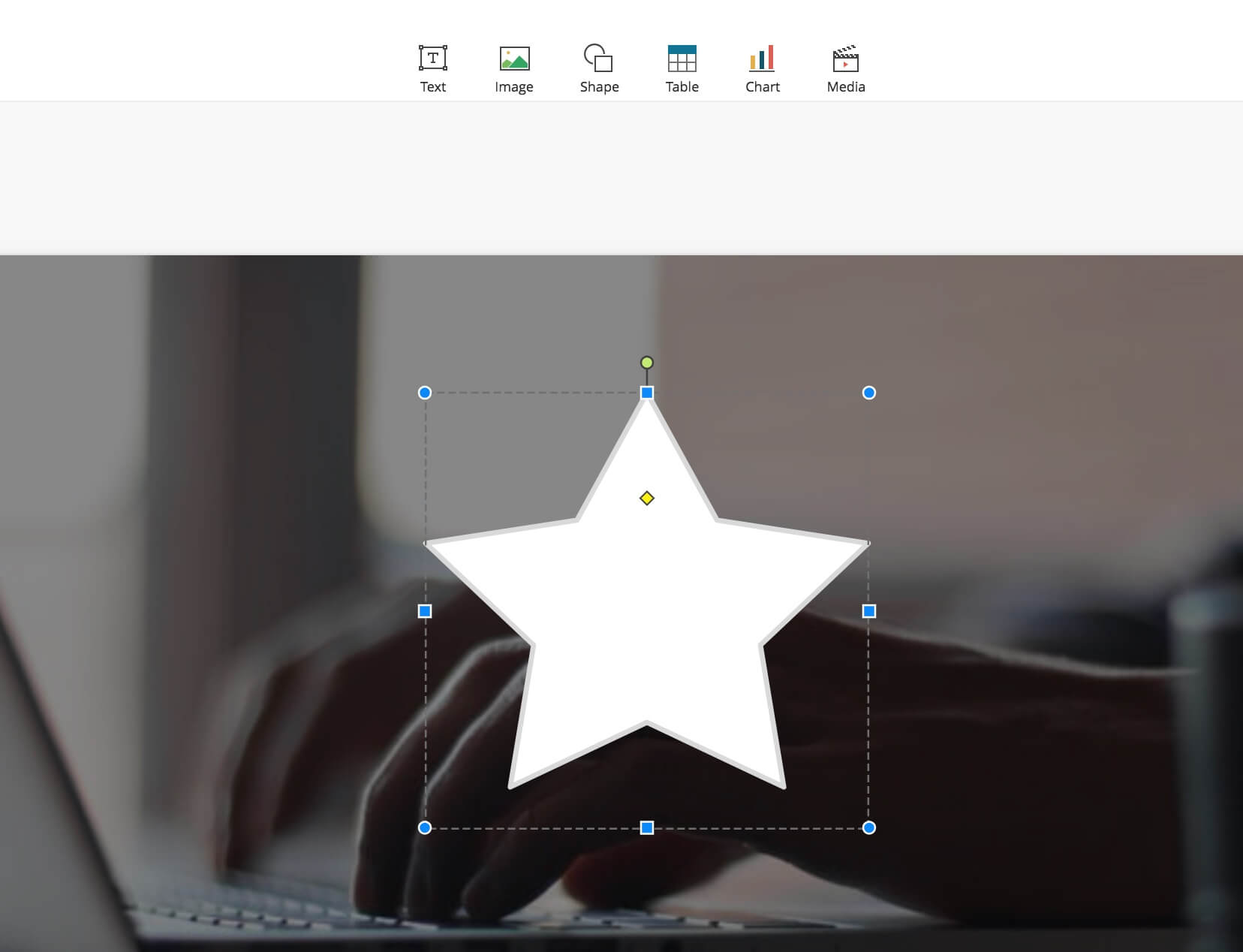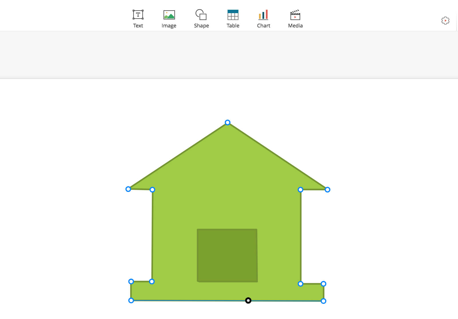 2. When the shape appears on the slide, you can adjust its size by dragging the pointers at the edges of the shape box.