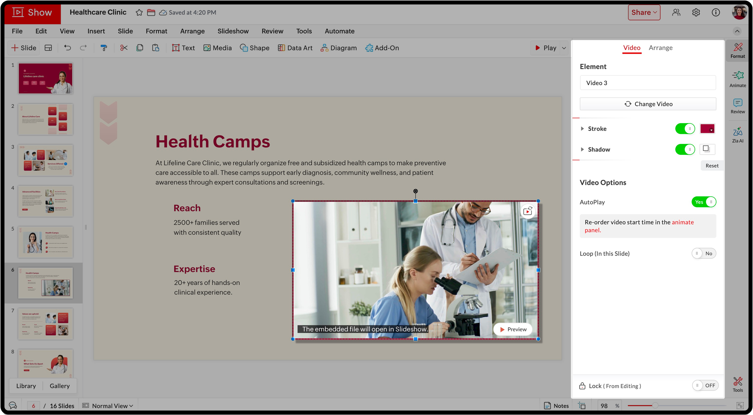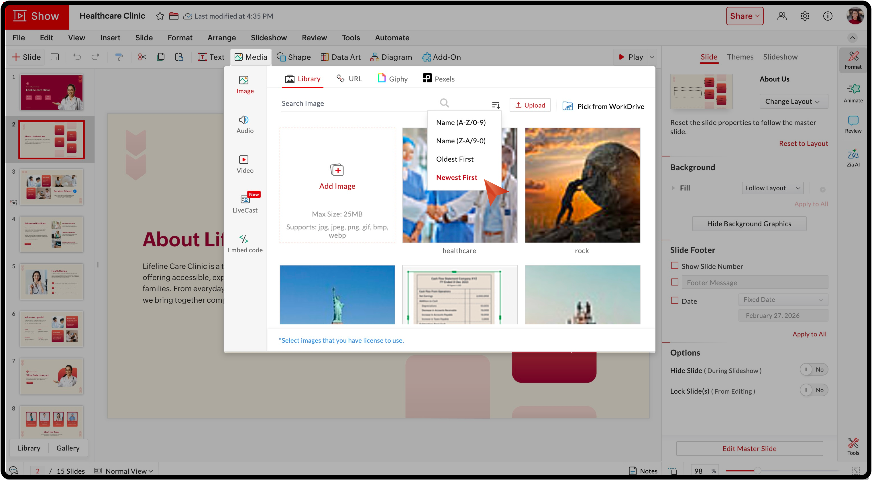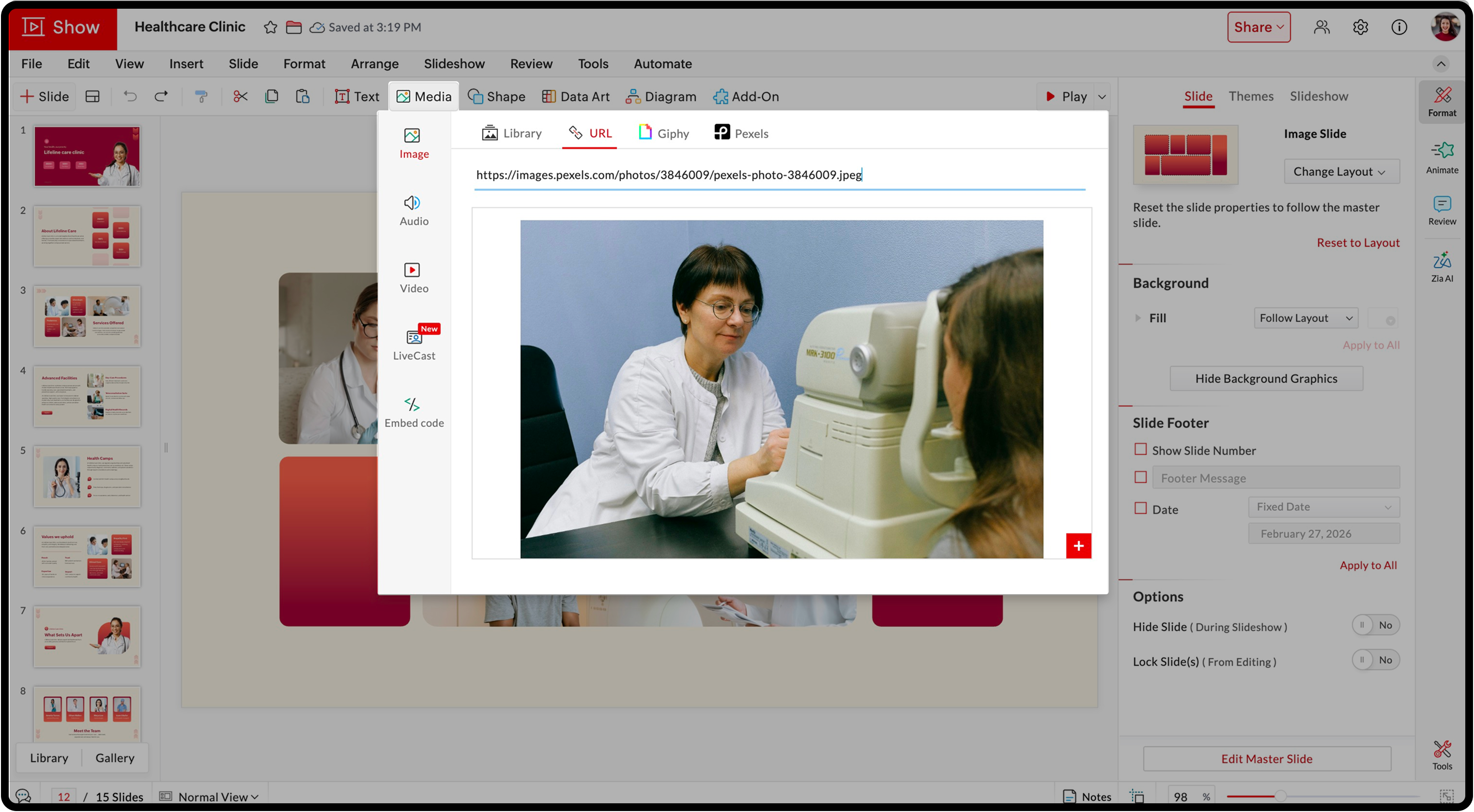Once you submit the form, the request will be raised. You'll be able to add embeds from the specific website once a moderator approves your request. To add an embed from the supported list of websites,Click Embed code in the left side on the Media window.