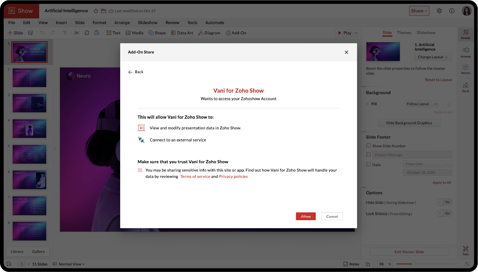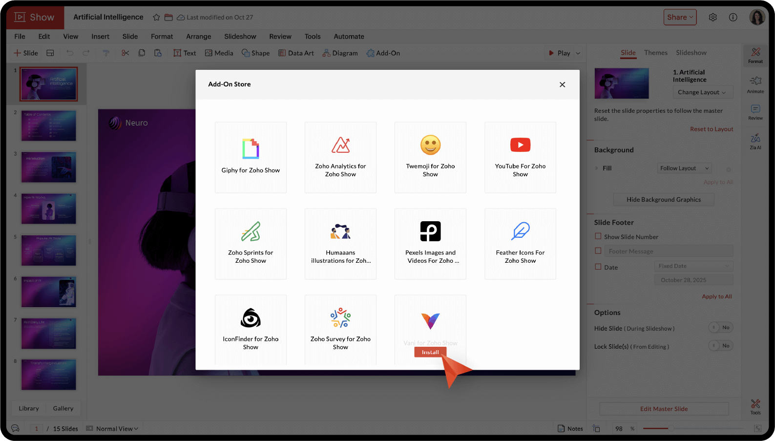 Install Vani add-on for Zoho Show