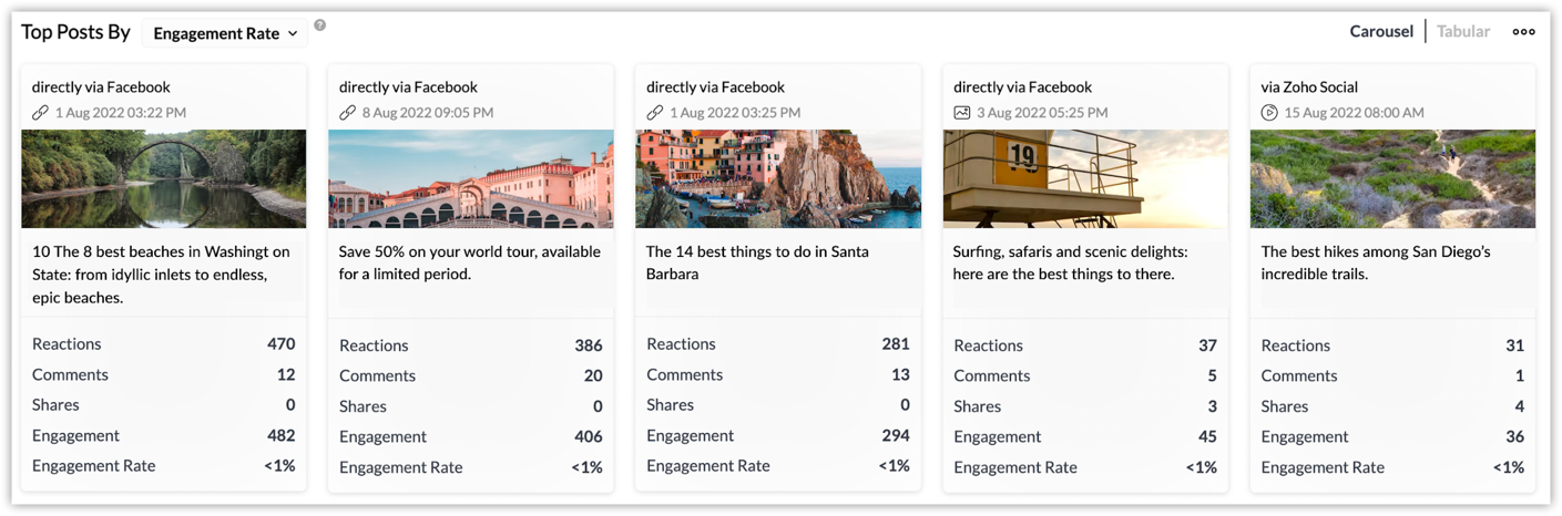 Top posts - The top-performing posts based on number of reactions, comments, shares, engagement, and engagement rate can be viewed here.