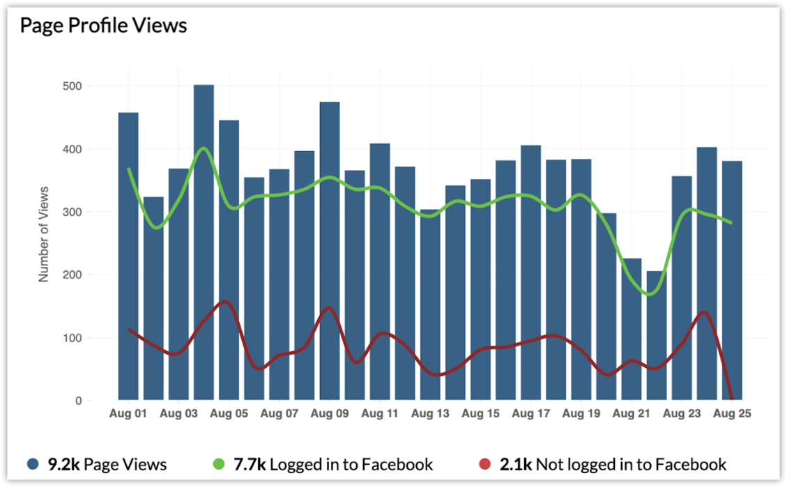 Page profile views - The total number of people who viewed your Facebook profile, and a comparison of how many people viewed it while being logged into Facebook versus how many viewed it without logging in.