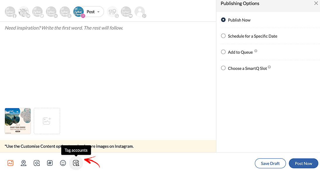 1. Click Tag Accounts in the compose window once you've attached the required images for the post.