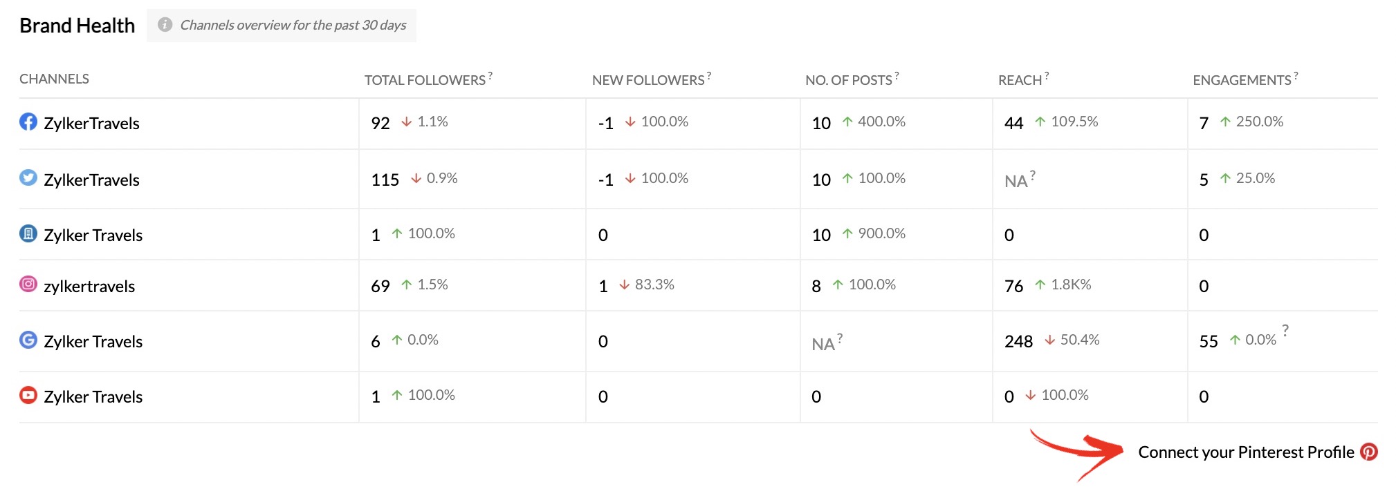 You can also click the Pinterest icon next to Add more channels from the Home page under Brand Health.