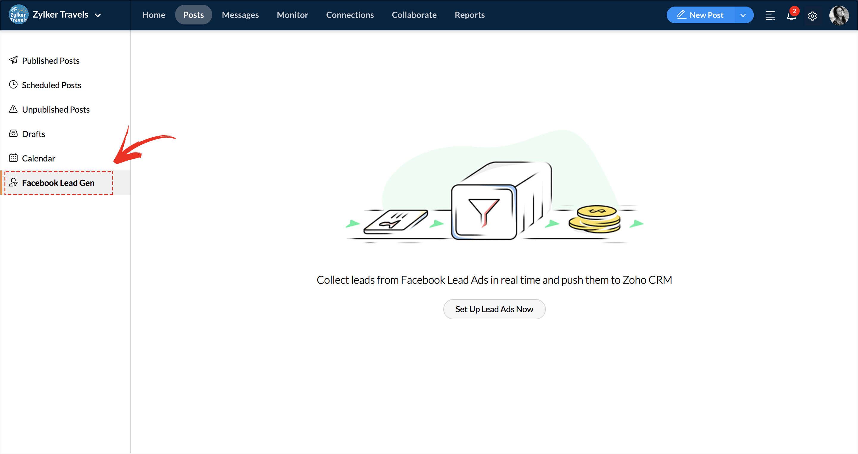 Here's how you can set up Facebook Lead Ads on Zoho Social: