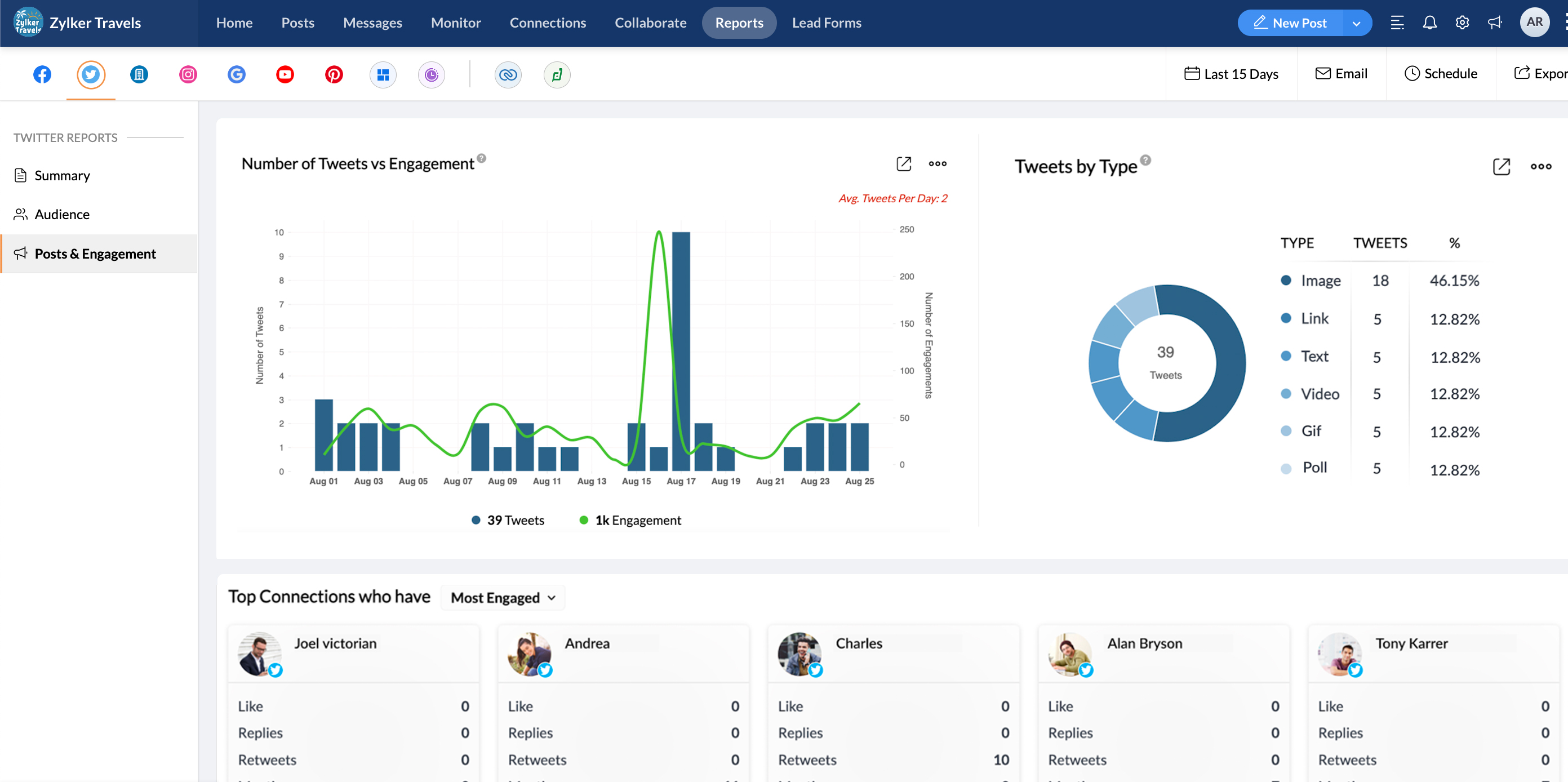 Yes, to view the volume of mentions and messages,  - Go to the Reports tab, - Head to Twitter reports - Under the Posts and Engagement section, find the Card Messages & Mentions Received.This will show the volume of Messages and Mentions received on ...