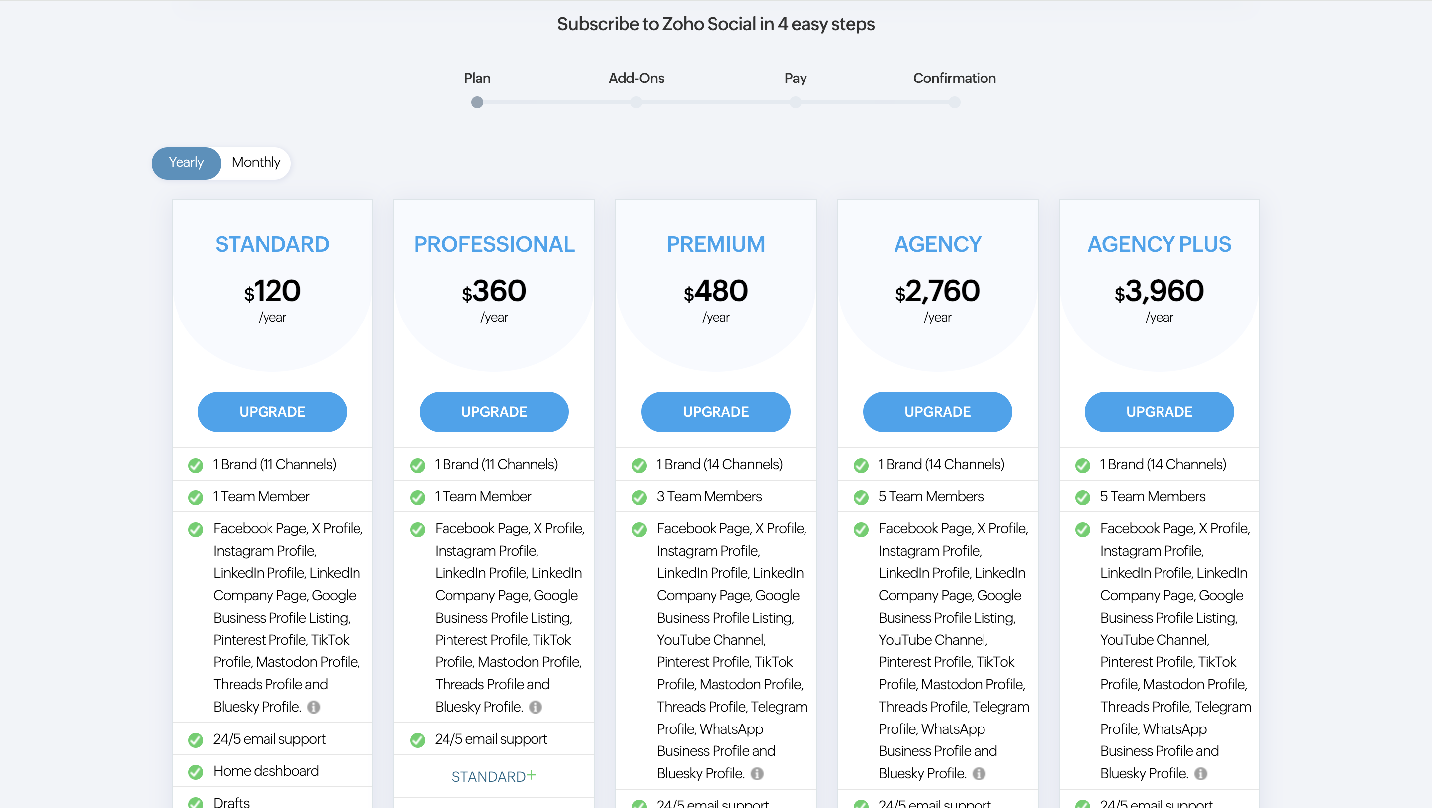 You can pay for your Zoho Social account via MasterCard, Visa, American Express, Paypal, bank transfer or cheque transfer. For further details, write to sales@zohocorp.com