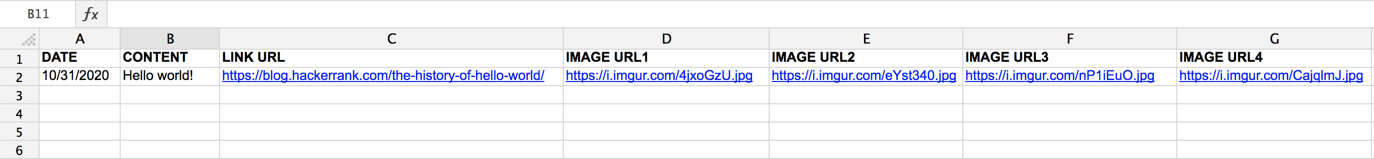 In case you wish to post multiple images, paste the URLs in separate columns as shown below: