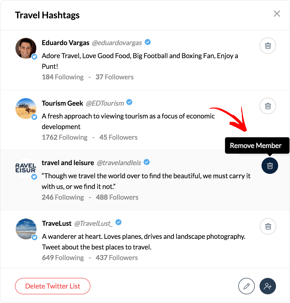4. On the pop up, hover on the member you want to remove, click the Remove Member icon.
