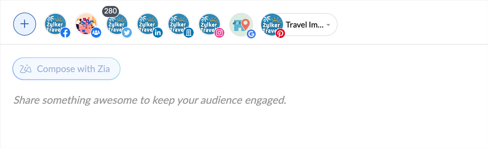 The administrator of your Zoho Social account can set up Zia in Zoho Social. Once set up, other users in the Zoho Social portal can use Zia from the Compose window.