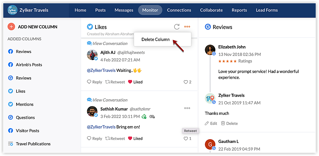 On Zoho Social, you can filter and search for specific things on your Monitor tab using keywords. Keyword search columns appear on your Monitor tab alongside your @mentions, tweets, etc. On the Standard Plan, you can add  5 keyword search columns per ...