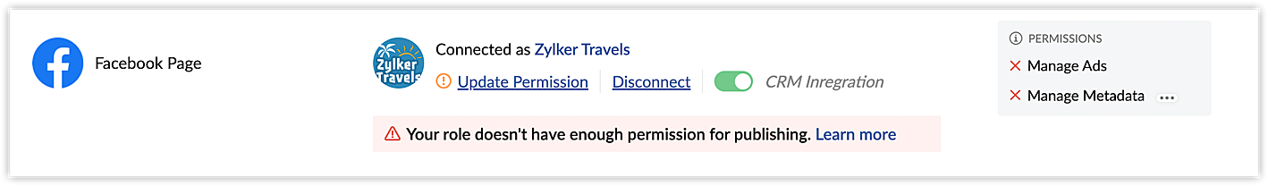 To update the permissions, go to Settings -> Social Channels -> Update permissions for the respective channel.