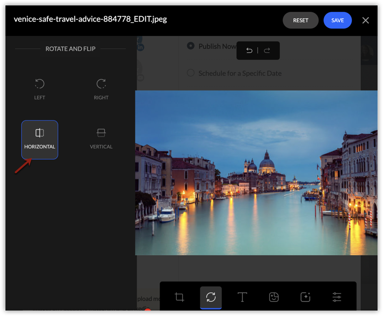 - Use the Undo arrow at the top of your screen to erase the latest change you made, the Reset option to undo all the changes you have made and reset the image back to the original version.
