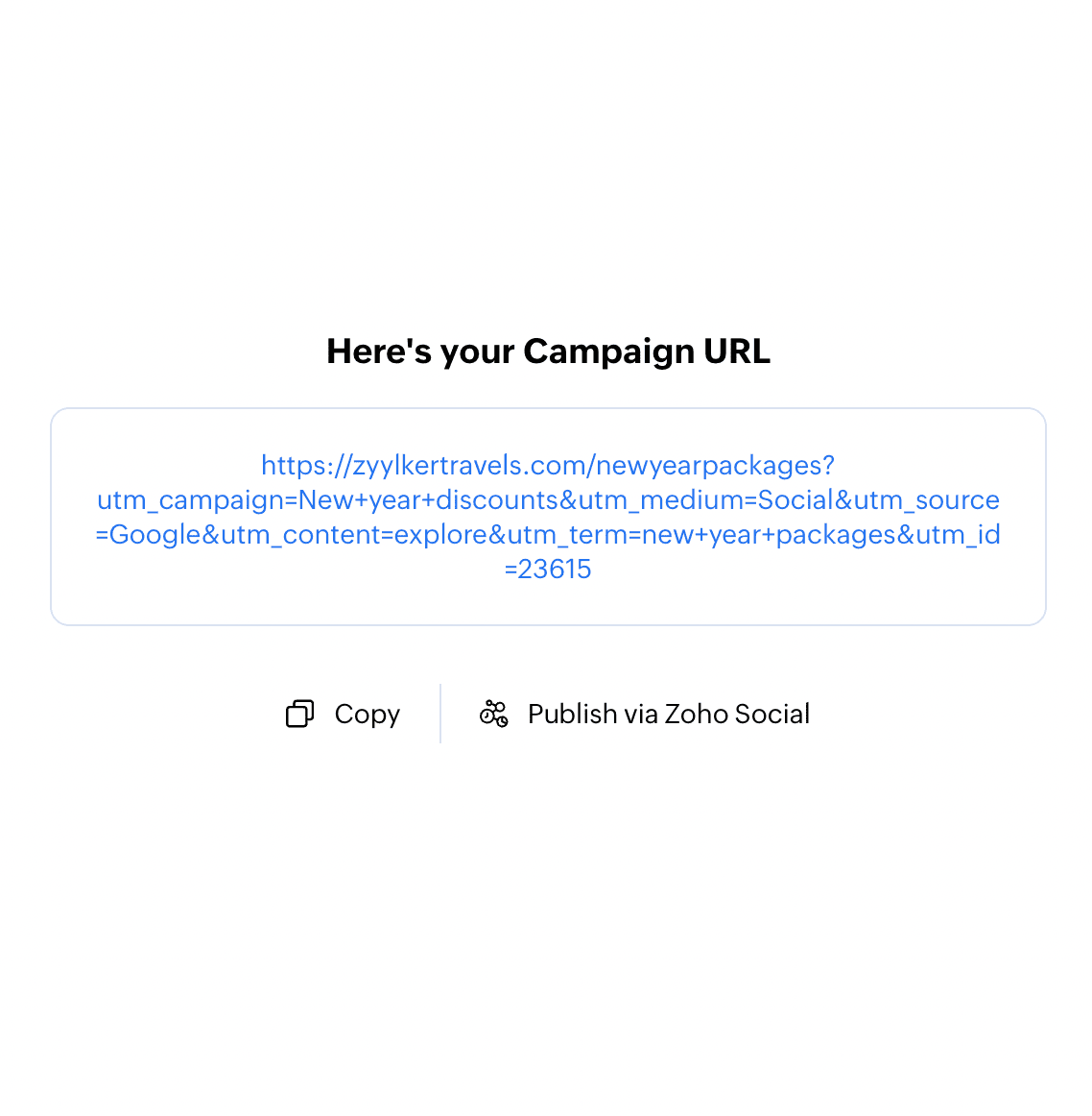 5. Copy the generated link from the right-side of your dashboard or publish it directly from here via Zoho Social to your social networks.