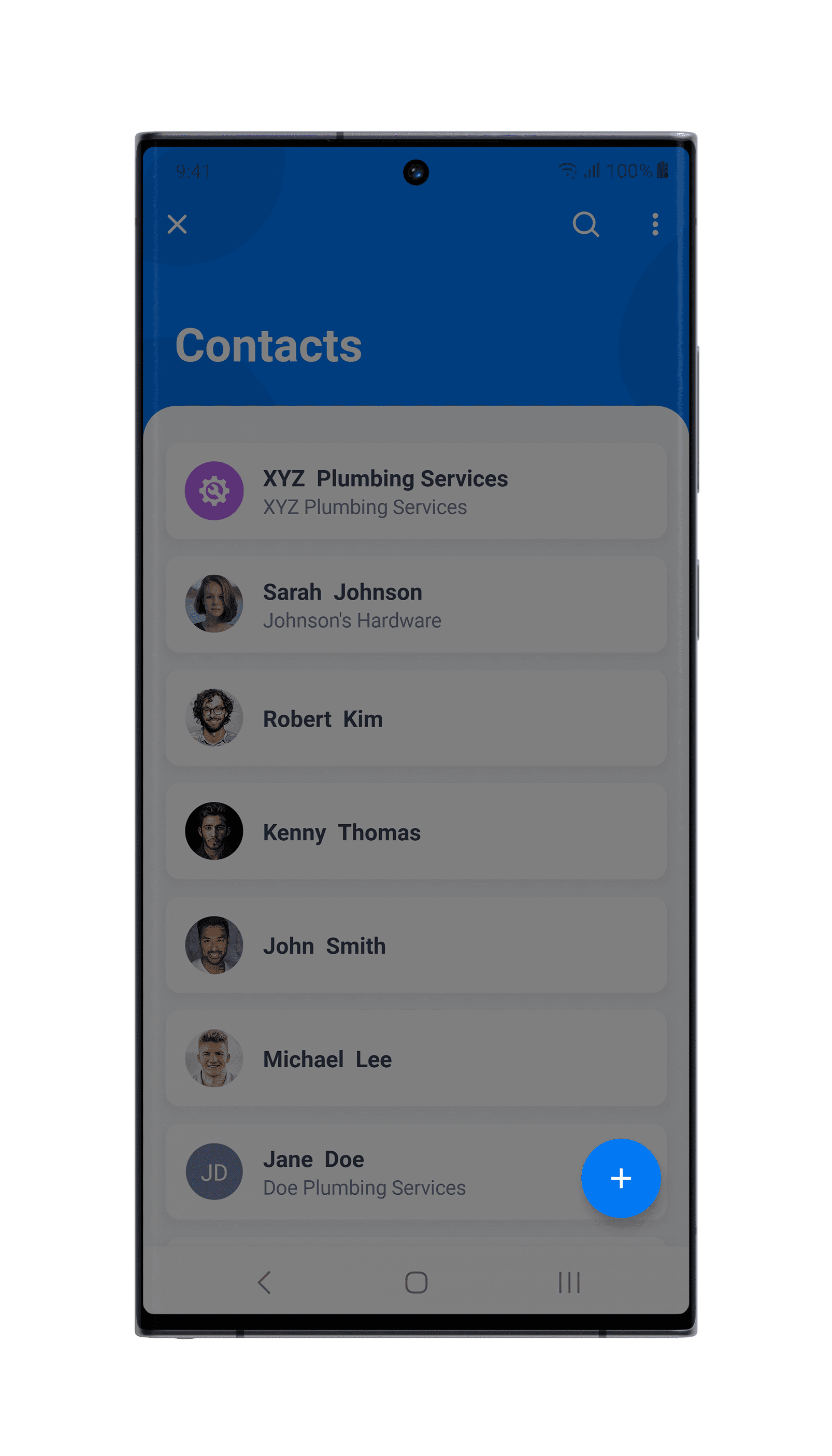 Contacts can be added and categorized as customers, leads, and partners in Solo. Existing contacts on your phone can also be imported into Solo.