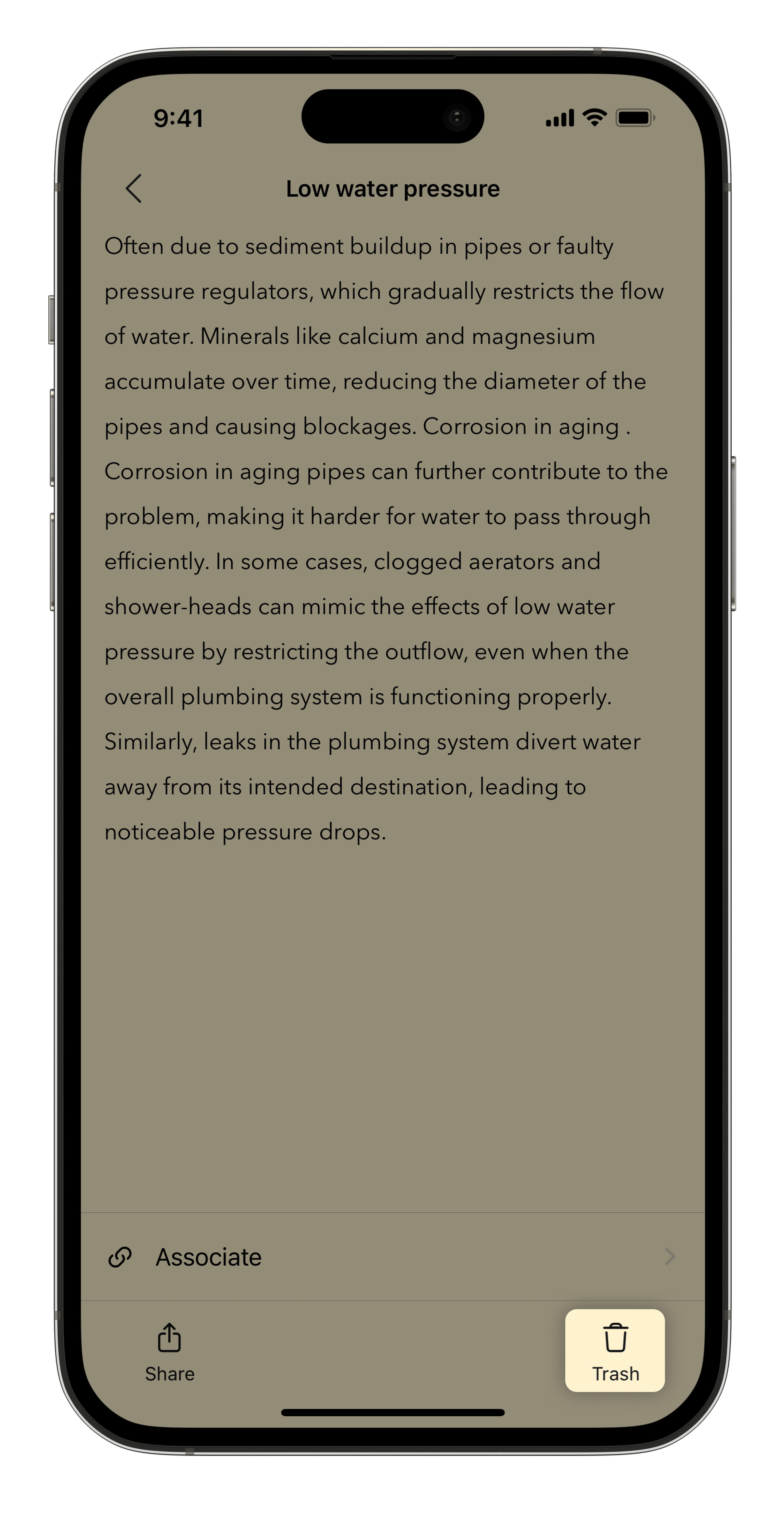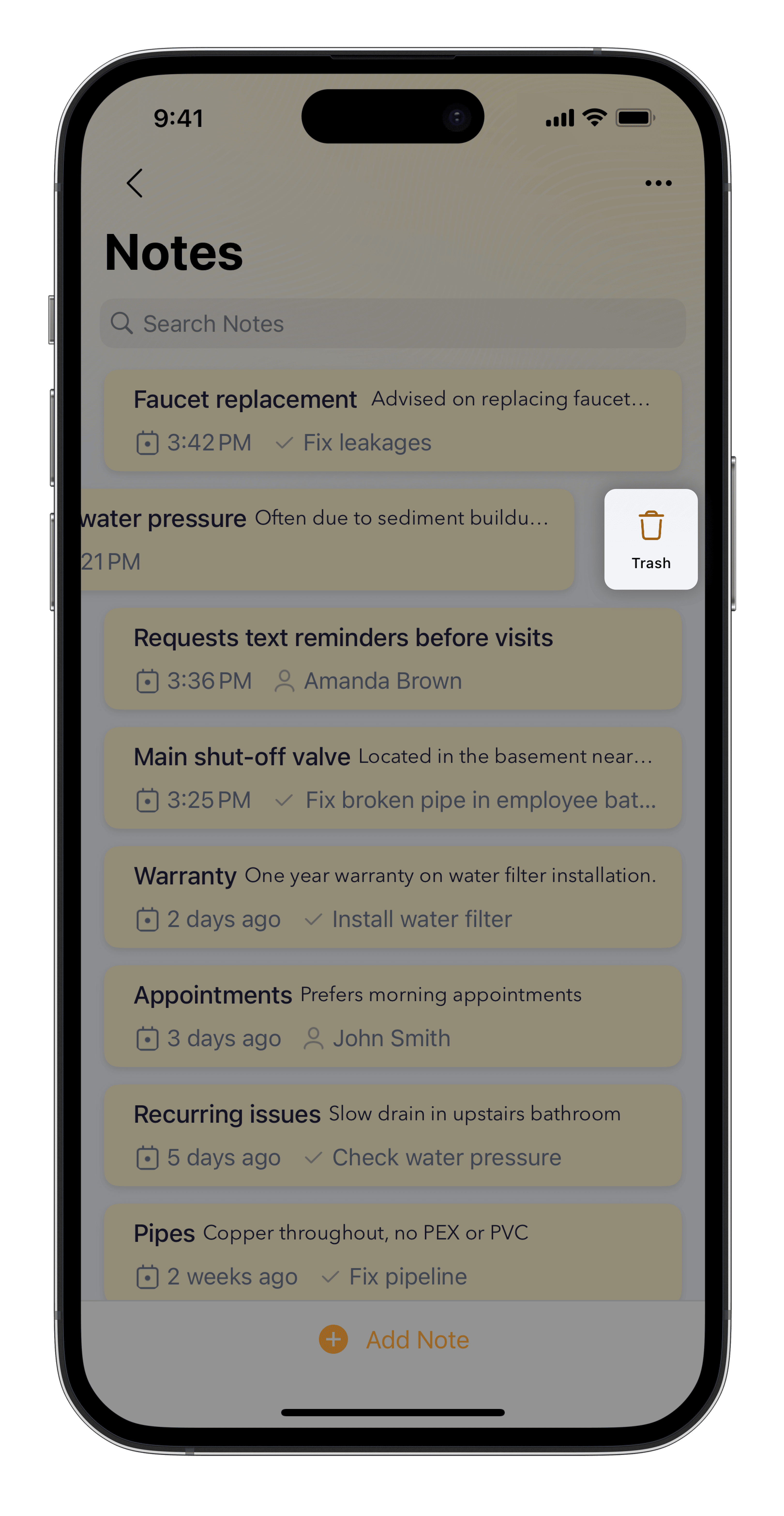 2. From the list of notes, swipe left on the note that needs to be trashed.