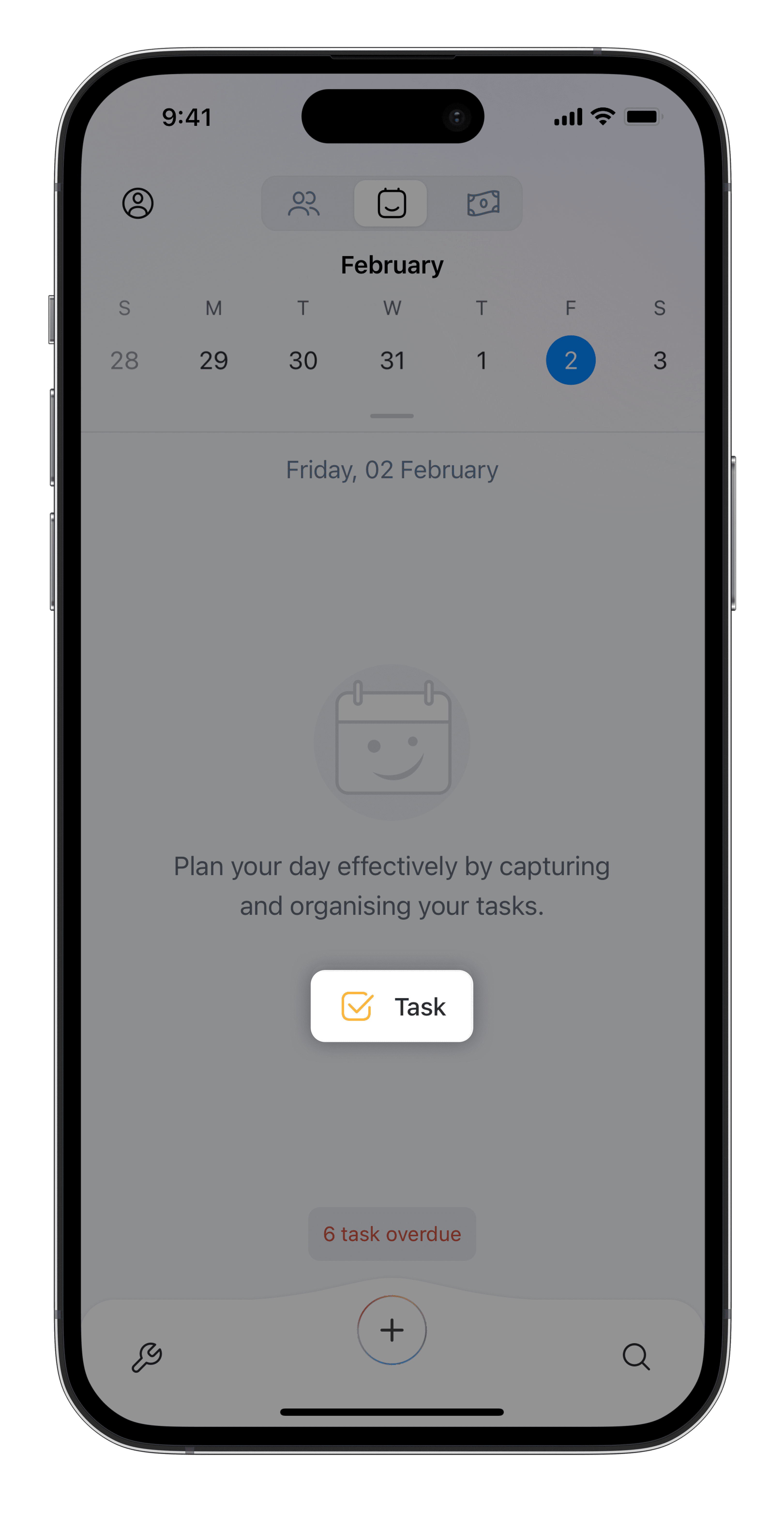 1. Click the + icon on the home-screen and select Task.