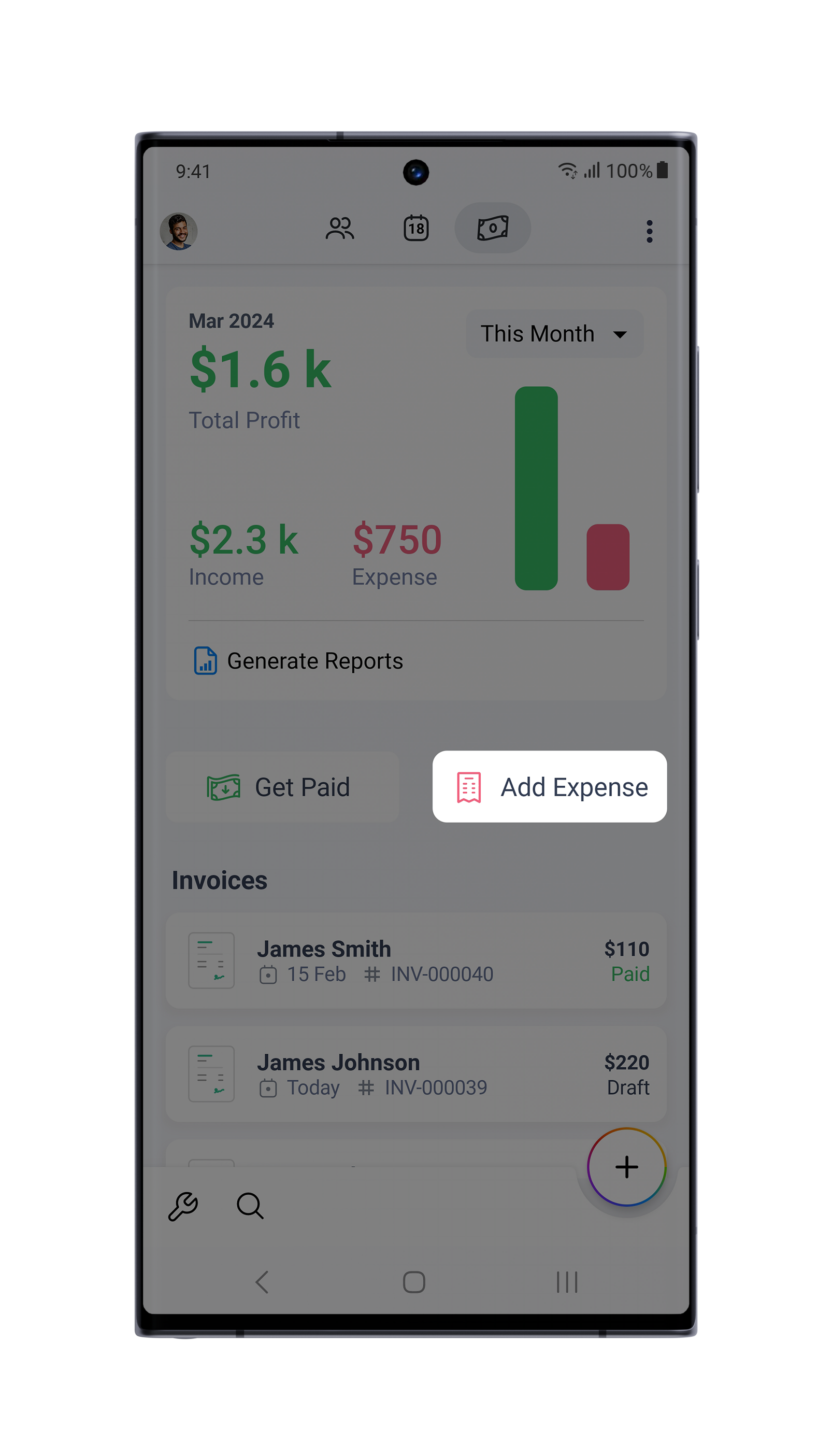 To add any attachment as reference to the expense, click Attachment and choose to either take a photo or upload files or import from the photo library.
