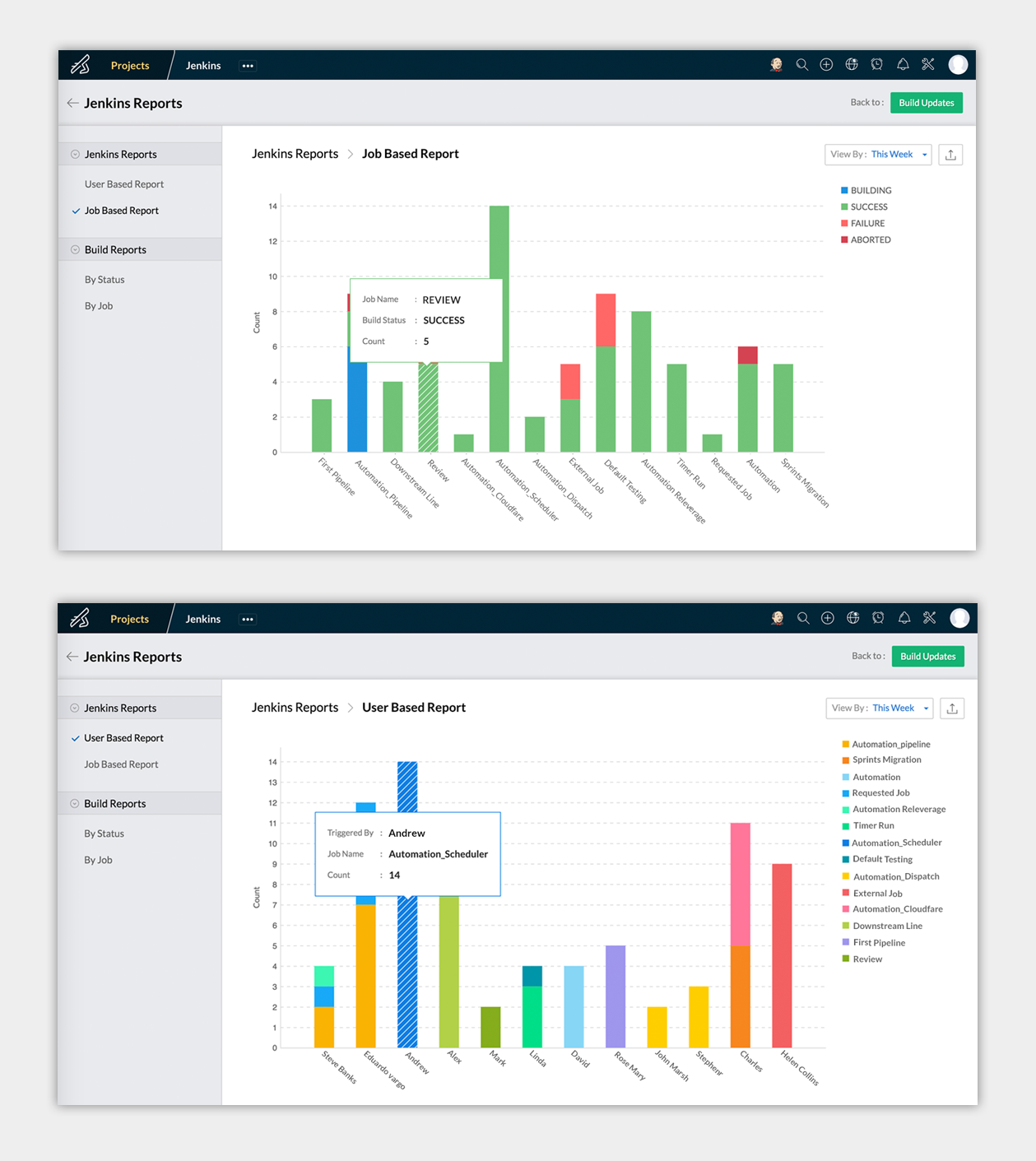 You can track all the build updates made in Jenkins from your Zoho Sprints team.
