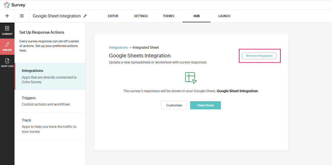 Once disconnected, the integration between Zoho Survey and Google Sheet will be removed, and responses won't get synced.