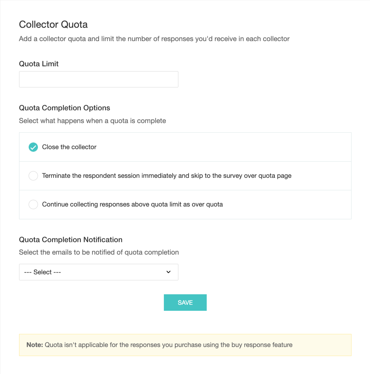Continue collecting responses above quota limit as over quota - Select this option if you want the survey to continue collecting responses above the quota limit.