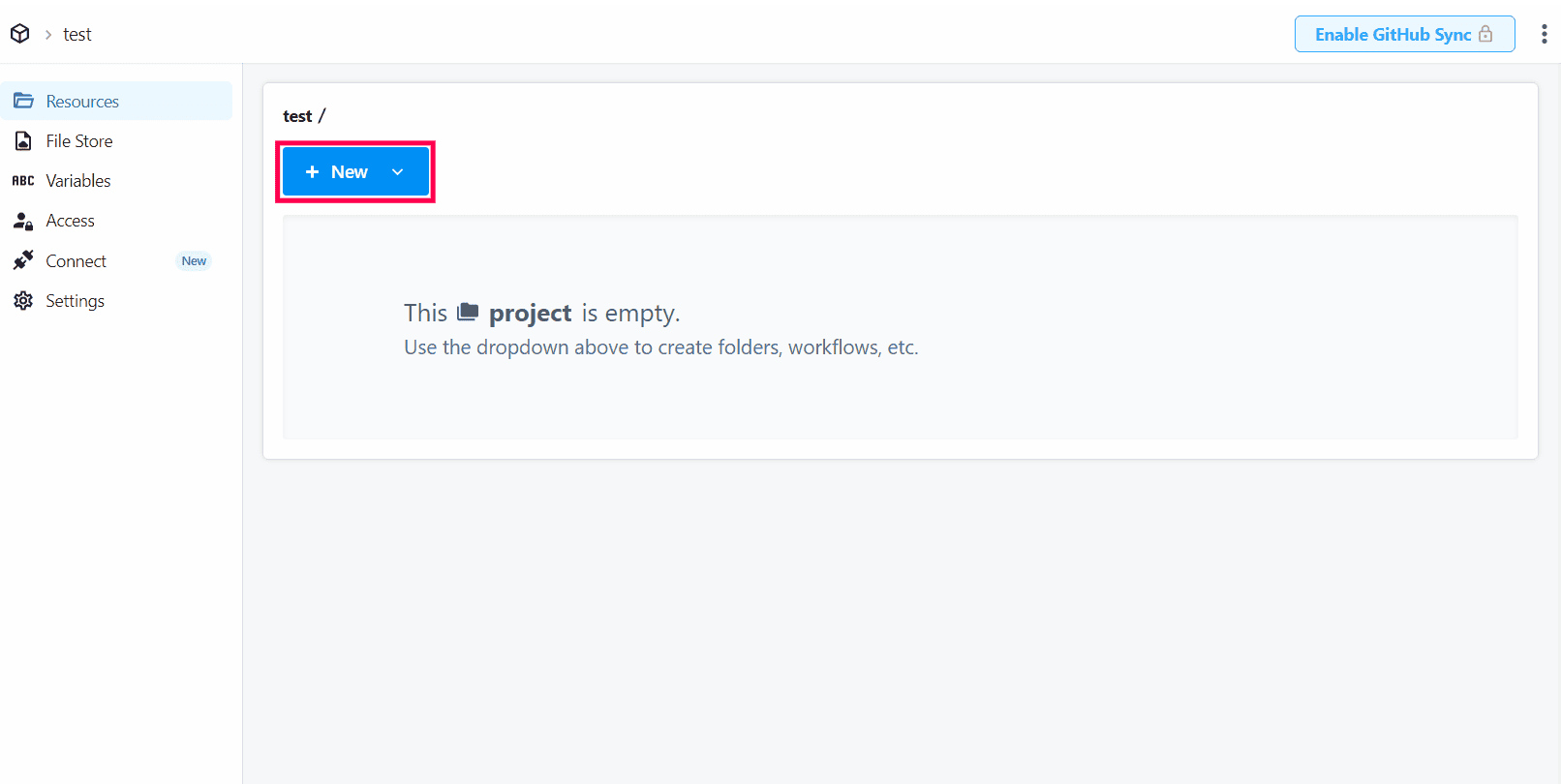 The created project will be displayed in the dashboard. Choose the project and click New.