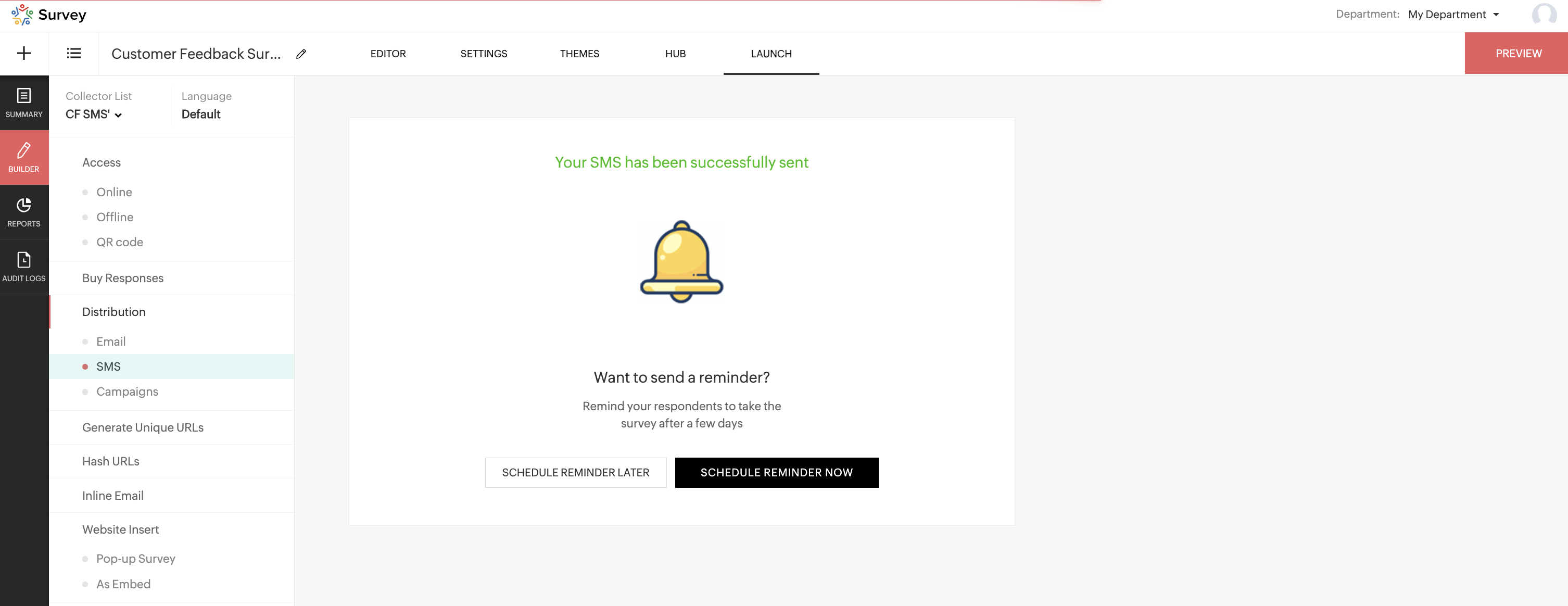 5. Click Create Reminder to send an SMS reminder to people who have not responded to your survey.