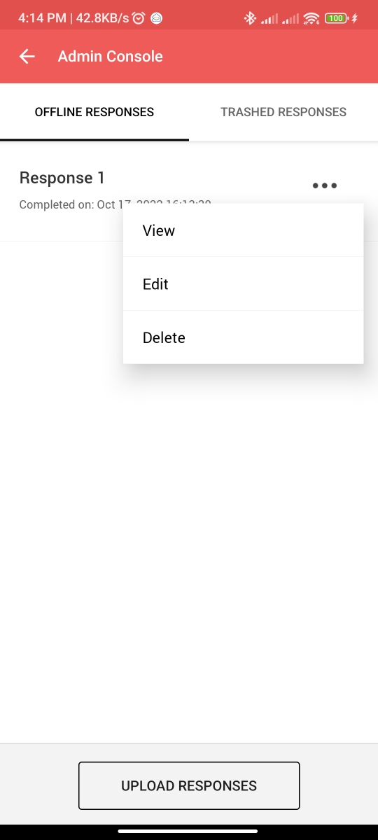 If you have not enabled Auto Upload, you'll find all the responses that are yet to be uploaded here. Tap View Responses to view, edit, or delete the responses. |