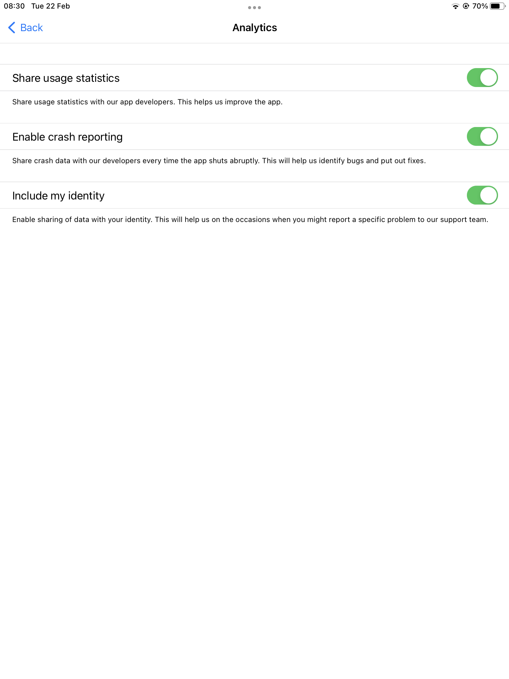 1. Share usage statistics: To share your usage statistics with our app developers to help them improve the app.