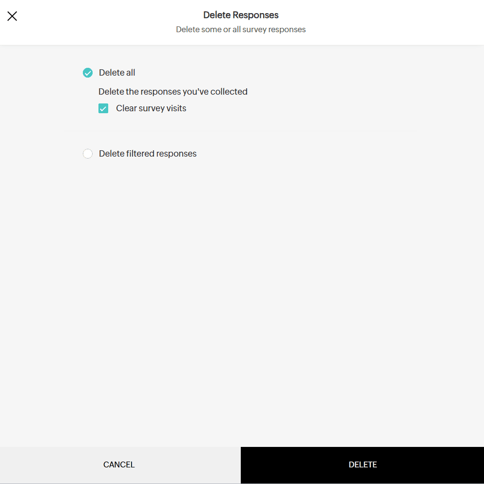 To delete all the responses, click Delete all. You can also clear survey visits.