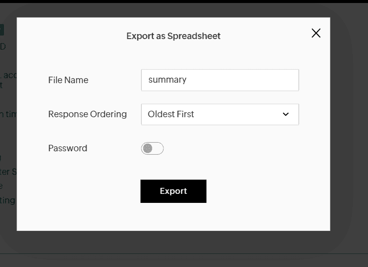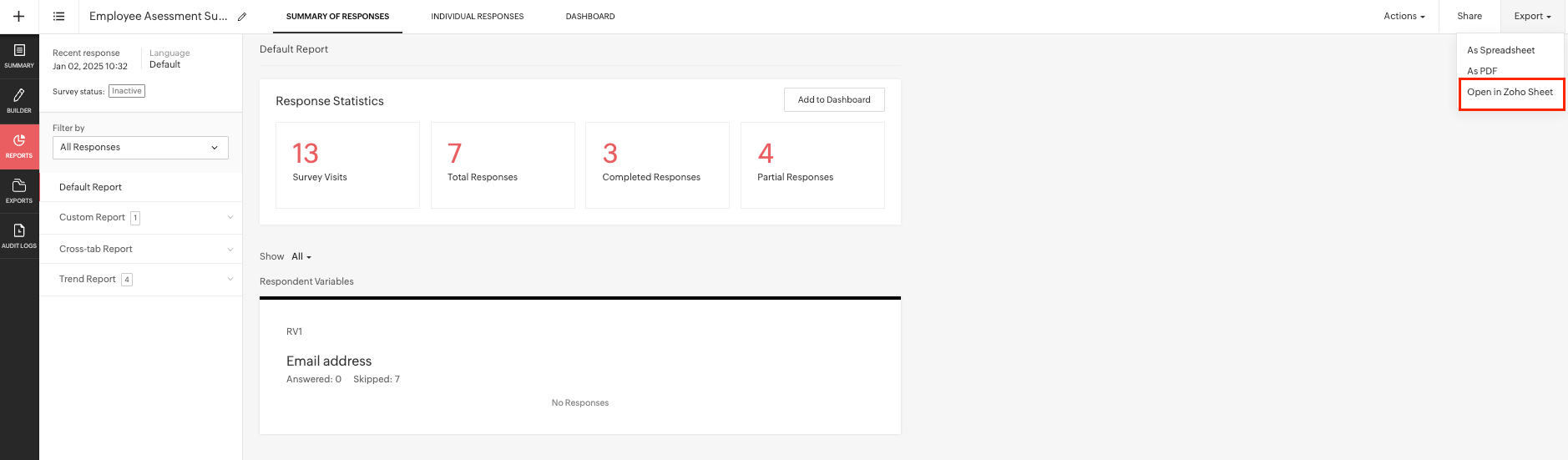 For exporting through sheets, you will be redirected to Zoho Survey.