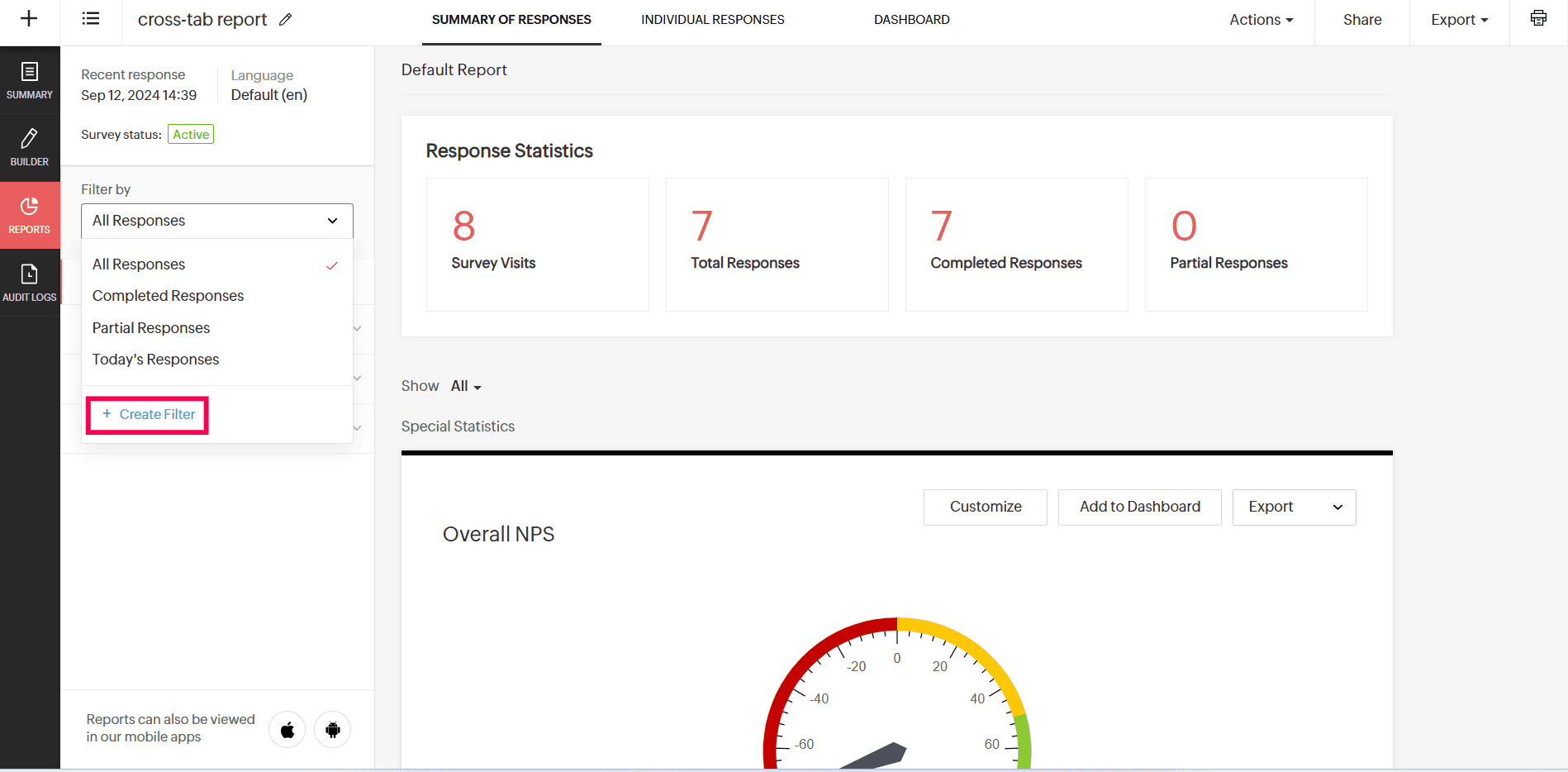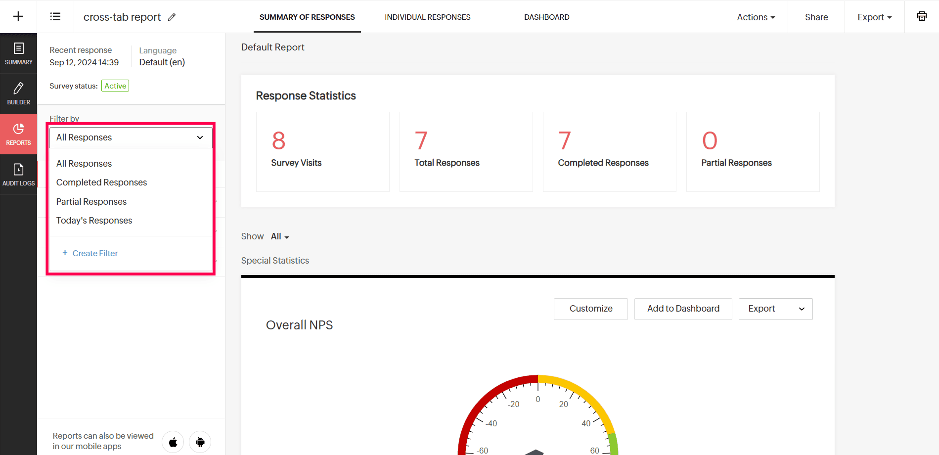 - All Responses- Will show all the responses the survey has collected