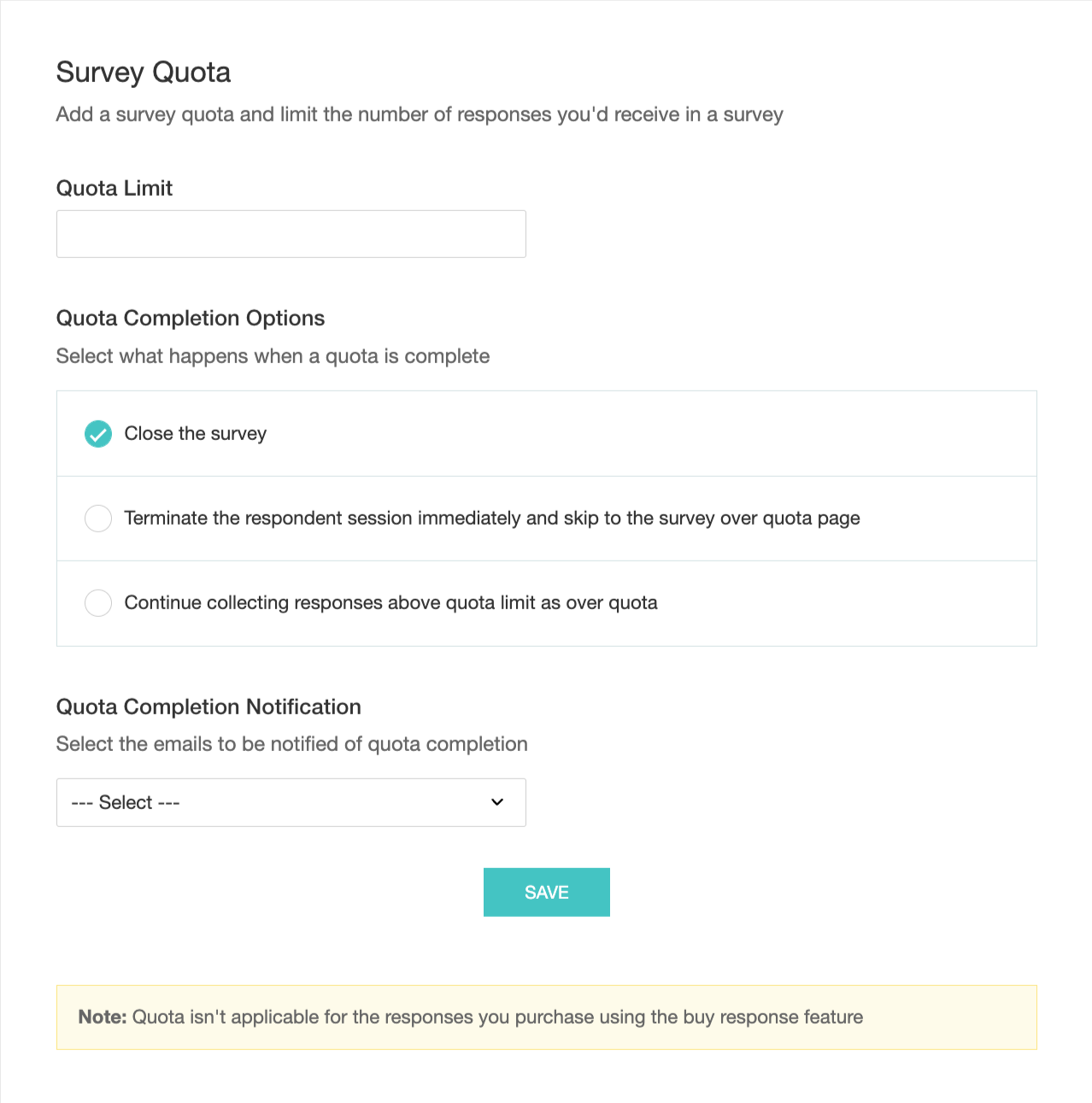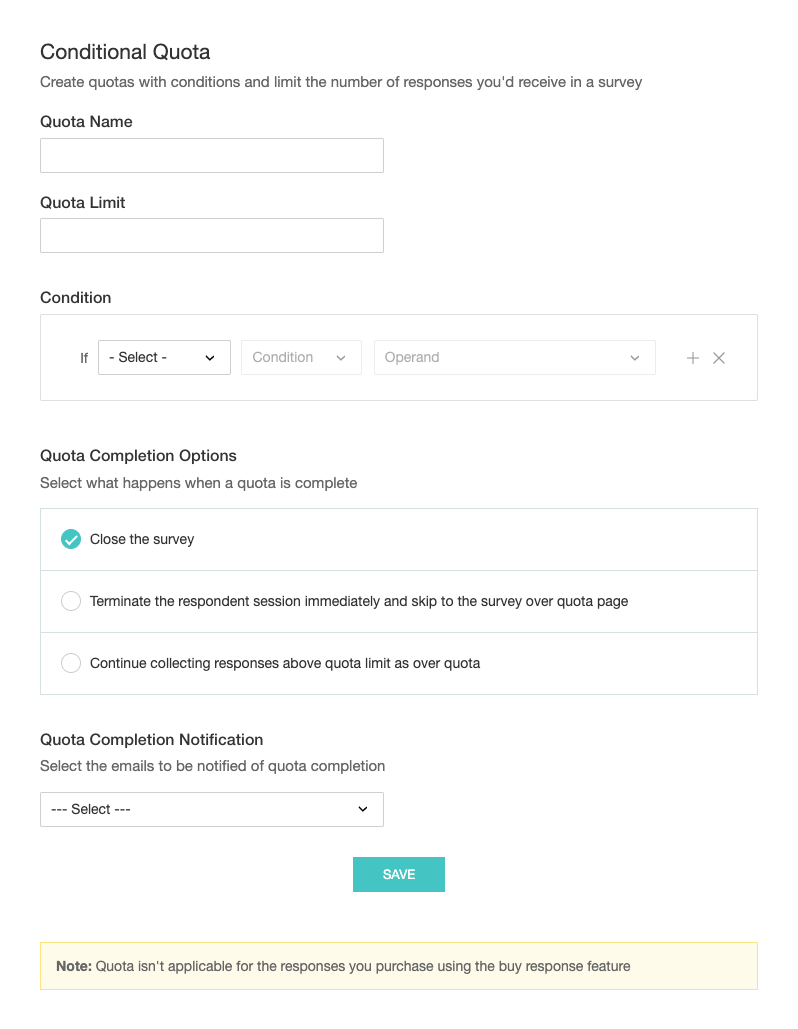 Enter the required number of responses in the Quota Limit field.