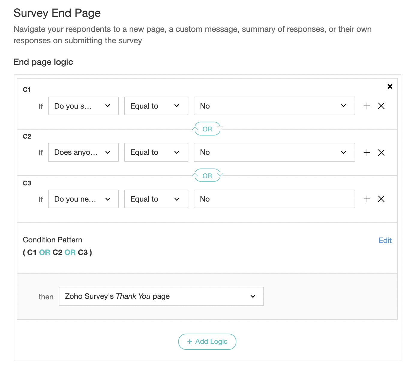 - In the Then list, select what you want your respondents to see after submitting their response: