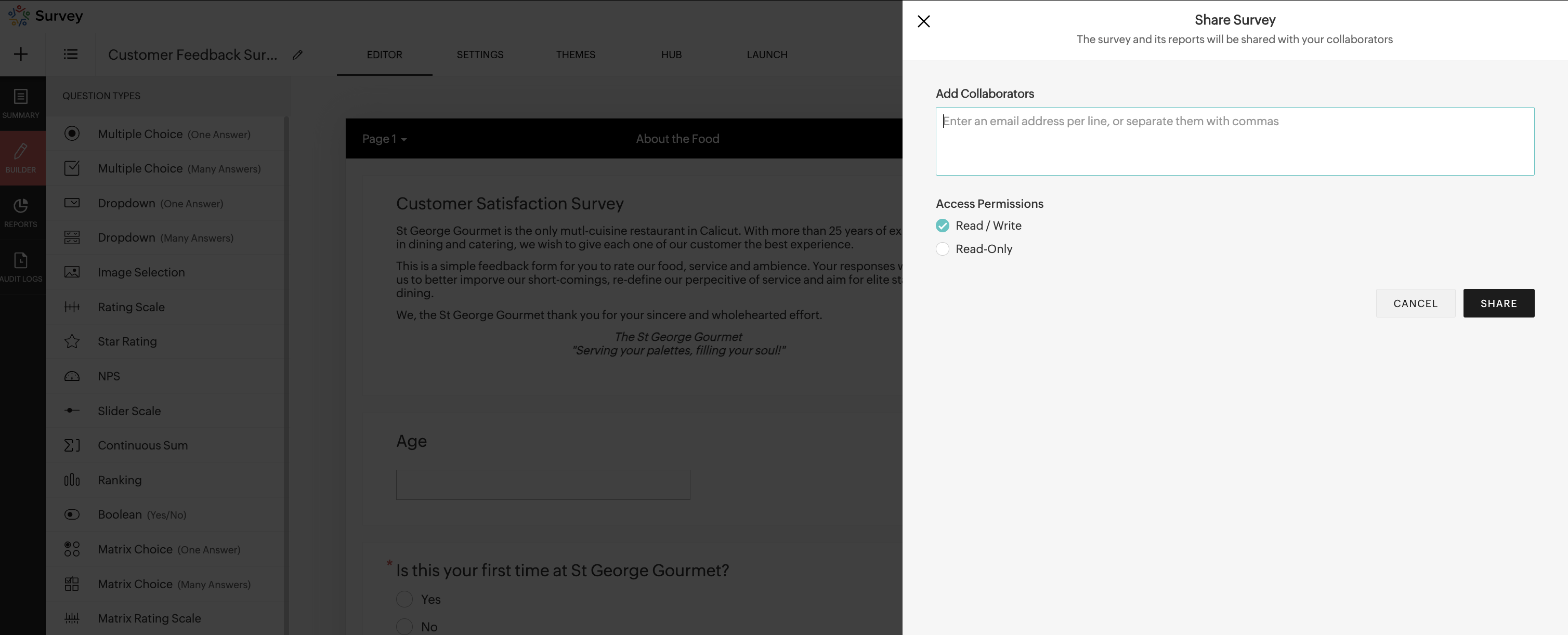 Click Share Survey.