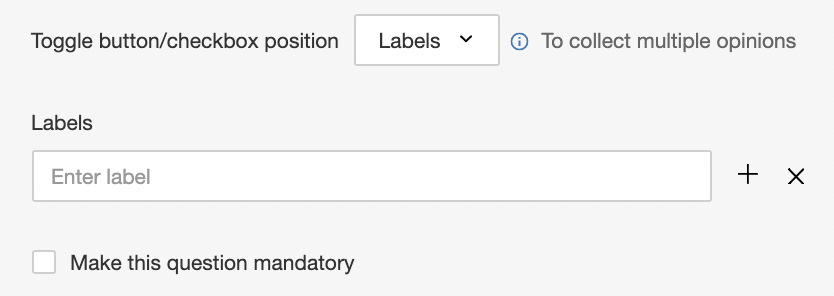 • Click the Toggle button/checkbox position dropdown and select Question message or Labels from the list. You can select a Question message to collect a single opinion, and Labels to gather multiple opinions.